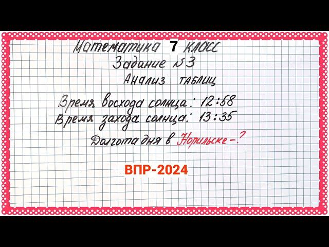 ВПР-2024. Математика 7 класс. Задание 3. Анализ таблиц. Задача про долготу дня