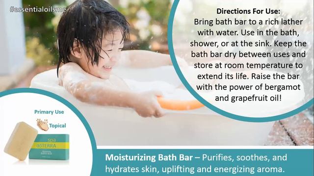 Learn more at... http://essentialoilkitsbylance.com/doterra-moisturizing-bath-bar/ Did you know? This moisturizing bath bar uses the power of bergamot essential oil and jojoba oil to take your skin to the next level during a shower or bath time. The main use of the doTERRA Bath Bar is topically on your skin when you rub a dub dub in the tub, lol. The main benefits of this Bath Bar includes: - Purifies, soothes, and hydrates skin - Uplifting and energizing aroma - Leaves you feeling clean and refreshed! How to use the Bath Bar: - Bring bath bar to a rich lather with water. Use in the bath, shower, or at the sink. - Keep the bath bar dry between uses and store at room temperature to extend its life. Raise the bar with the power of bergamot and grapefruit oil! In Summary: The doTERRA Moisturizing Bath Bar contains bergamot oil, grapefruit oil, jojoba oil, vegetable glycerin, and aloe leaf juice to help your skin feel soft and clean. This is a great addition to the Spa Line and goes great with the body butter, sugar scrub, and body wash! ***Next Steps*** Connect with me on instagram at... https://www.instagram.com/essentialoilsme/ Search #essentialoilsme on facebook for more pictures! ***For business inquiries*** essentialoilsme@gmail.com This video has been approved by doTERRA compliance