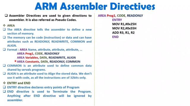 ARM7 Assembler Directives explained with following Timestamps: 0:00 - ARM7 Assembler Directives - ARM Processor 0:15 - Basics of Assembler Directives in ARM 1:41 - AREA Assembler Directive in ARM 4:29 - ENTRY & END Assembler Directives in ARM 5:39 - EQU Assembler Directive in ARM 6:16 - RN Assembler Directive in ARM 6:46 - LDR Assembler Directive in ARM 8:14 - DCB DCW & DCD Assembler Directives in ARM 9:13 - SPACE Assembler Directive in ARM 9:45 - ADR Assembler Directive in ARM 10:18 - ALIGN Assembler Directive in ARM ARM7 Assembler Directives explained with following outlines: 1. ARM Processor 2. ARM7 Assembler Directives 3. Basics of Assembler Directives in ARM In this video, i have covered following Assembler Directives of ARM 1. AREA Assembler Directive in ARM 2. ENTRY & END Assembler Directives in ARM 3. EQU Assembler Directive in ARM 4. RN Assembler Directive in ARM 5. LDR Assembler Directive in ARM 6. DCB DCW & DCD Assembler Directives in ARM 7. SPACE Assembler Directive in ARM 8. ADR Assembler Directive in ARM 9. ALIGN Assembler Directive in ARM Engineering Funda channel is all about Engineering and Technology. Here this video is a part of ARM Processor. #ARMAssemblerDirectives #AssemblerDirectives #ARM7 #ARM #ARMProcessor #EngineeringFunda ⬇ *Premium Courses of Engineering Funda* ⬇ ✅ *༺?Computer Network ?༻* – https://www.youtube.com/playlist?list=PLgwJf8NK-2e6fvY8yegkzDBiK7ywj8ZhK ✅ *༺?Computer Architecture & Organization ?༻* – https://www.youtube.com/playlist?list=PLgwJf8NK-2e7XZXcFujMw--IDZ2nnsXNT ✅ *༺?ARM Processor ?༻* – https://www.youtube.com/playlist?list=PLgwJf8NK-2e7nFEozQhZDZDSm09SwqbGP ✅ *༺?Internet of Things - IoT ?༻* – https://www.youtube.com/playlist?list=PLgwJf8NK-2e6FvFUItZbGYnKiqjrlLpCb ✅ *༺?Microprocessor 8085 ?༻* – https://www.youtube.com/playlist?list=PLgwJf8NK-2e5vHwmowy_kGtjq9Ih0FzwN ✅ *༺?Microprocessor 8086 ?༻* – https://www.youtube.com/playlist?list=PLgwJf8NK-2e4oAeDid0hwuiol_RJdscrp ✅ *༺?AVR Microcontroller ?༻* – https://www.youtube.com/playlist?list=PLgwJf8NK-2e55CdbY_WnY6pejPHoojCkJ ✅ *༺?8051 Microcontroller ?༻* – https://www.youtube.com/playlist?list=PLgwJf8NK-2e49i6neo70aGtFLvKeZ3IQD ✅ *༺?80386 & Pentium Processor ?༻* – https://www.youtube.com/playlist?list=PLgwJf8NK-2e7f4yPj6AbrUoburKwX0fFA ✅ *༺?Embedded System ?༻* – https://www.youtube.com/playlist?list=PLgwJf8NK-2e5xvXygtghfi-tzyeACx7CO ✅ *༺?VLSI ?༻* – https://www.youtube.com/playlist?list=PLgwJf8NK-2e6au9bX9P_bA3ywxqigCsaC ✅ *༺?Digital Electronics ?༻* – https://www.youtube.com/playlist?list=PLgwJf8NK-2e7nYSG31YWEUfwgAp2uIOBY ✅ *༺?Network Theory ?༻* – https://www.youtube.com/playlist?list=PLgwJf8NK-2e7AccPu8mUhhsJNol9uIKTJ ✅ *༺?Control Engineering ?༻* – https://www.youtube.com/playlist?list=PLgwJf8NK-2e43et6qbo4IqYSJCv-6kN90 ✅ *༺?Electromagnetic Theory ?༻* – https://www.youtube.com/playlist?list=PLgwJf8NK-2e4I_YltJja47CwZJkzNWK89 ✅ *༺?Power Electronics ?༻* – https://www.youtube.com/playlist?list=PLgwJf8NK-2e5Hnu82T1CYLZ8kbZs4Jx8x ✅ *༺?Electronic Devices ?༻* – https://www.youtube.com/playlist?list=PLgwJf8NK-2e5G05PTgyTTSVyzTOKRfmTn ✅ *༺?Signal and System ?༻* – https://www.youtube.com/playlist?list=PLgwJf8NK-2e7VdLw7PebRTcZXb_4nKeVh ✅ *༺?Optical Communication ?༻* – https://www.youtube.com/playlist?list=PLgwJf8NK-2e7CDIWsh61eItP9iRw1EIQc ✅ *༺?Analog Communication ?༻* – https://www.youtube.com/playlist?list=PLgwJf8NK-2e7uyUYrpgUUQowmRuKxRdwp ✅ *༺?Digital Communication ?༻* – https://www.youtube.com/playlist?list=PLgwJf8NK-2e5PngHbdEadEun5XPvnn00N ✅ *༺?Antennas & wave Propagation ?༻* – https://www.youtube.com/playlist?list=PLgwJf8NK-2e7tzLIDL4aXUbtRFY3ykmkT ✅ *༺?Microwave Engineering ?༻* – https://www.youtube.com/playlist?list=PLgwJf8NK-2e6A4Mtxud6xPHE1UecxWsHW ✅ *༺?Basic Electronics ?༻* – https://www.youtube.com/playlist?list=PLgwJf8NK-2e76qHT4VOu9uTw8wj0i4blS ✅ *༺?Analog Electronics ?༻* – https://www.youtube.com/playlist?list=PLgwJf8NK-2e5u1DJ5jfTcj6m1GX-cEdm8 ✅ *༺?Digital Signal Processing ?༻* – https://www.youtube.com/playlist?list=PLgwJf8NK-2e4QMlcn_WS85C78UFFNTcbp ✅ *༺?RADAR Engineering ?༻* – https://www.youtube.com/playlist?list=PLgwJf8NK-2e4KmA52Jw3-JhDhFIDQZ9Bv ✅ *༺?Audio Video System / TV ?༻* – https://www.youtube.com/playlist?list=PLgwJf8NK-2e7EJcPI0P_DMw49ufTYfuOz ✅ *༺?Engineering Drawing/ Graphics ?༻* – https://www.youtube.com/playlist?list=PLgwJf8NK-2e79xuABrIQeXYlGuuickEz7 ✅ *༺?Basic Mechanical Engineering ?༻* – https://www.youtube.com/playlist?list=PLgwJf8NK-2e7Fe4vAYDaL0bpseGNhc9on ✅ *༺?Mechanics of Solid ?༻* – https://www.youtube.com/playlist?list=PLgwJf8NK-2e53xcLCS7ay2iLRolNxyxFk ✅ *༺?Theory of Computation ?༻* – https://www.youtube.com/playlist?list=PLgwJf8NK-2e6GfXdwqWX5YmszV2KGv-yl ✅ *༺?Java Programming ?༻* – https://www.youtube.com/playlist?list=PLgwJf8NK-2e5BeN1WTXg1ENPtkRR3SfCI ✅ *༺?Python Programming ?༻* – https://www.youtube.com/playlist?list=PLgwJf8NK-2e5pY2eB-Lht2_CerQue0Xo4 ✅ *༺?Placement Test series on C ?༻* – https://www.youtube.com/playlist?list=PLgwJf8NK-2e5ovLgoJkv0Pn58UrucrTPt