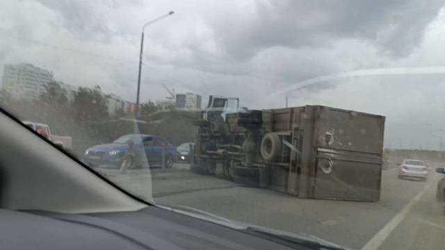 На объездной фура перевернулась