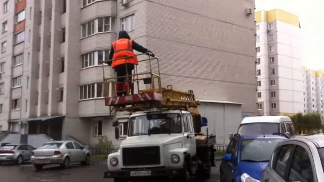 Машина с подъёмным краном во дворе. Воронеж. 01.11.2017 г.
