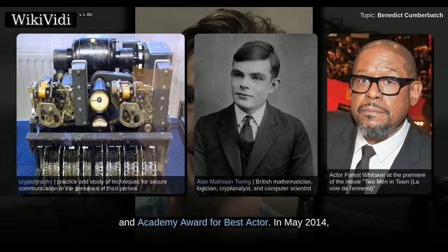 '''Benedict Timothy Carlton Cumberbatch''' [[Commander of the Order of the British Empire|CBE]] (born 19 July 1976) is an English actor who has [[List of Benedict Cumberbatch performances|performed in film, television, theatre and radio]]. He is the son of actors [[Timothy Carlton]] and [[Wanda Ventham]]. Cumberbatch graduated from the [[University of Manchester]] and continued his training at the [[London Academy of Music and Dramatic Art]], obtaining a Master of Arts in Classical Acting. He first performed at the [[Open Air Theatre, Regent's Park]] in [[Shakespearean]] productions and made his [[West End theatre|West End]] debut portraying George Tesman in [[Richard Eyre]]'s revival of ''[[Hedda Gabler]]'' in 2005. Since then he has starred in the [[Royal National Theatre]] productions ''[[After the Dance (play)|After the Dance]]'' (2010) and ''[[Frankenstein (2011 play)|Frankenstein]]'' (2011). In 2015, he played [[William Shakespeare]]'s ''[[Hamlet]]'' at the [[Barbican Centre... http://www.wikividi.com ____________________________________ Shortcuts to chapters: 00:03:12: Early life 00:04:00: Education 00:05:12: Theatre 00:08:21: Television 00:13:32: Film 00:17:26: Radio 00:18:42: Narration 00:21:12: Music 00:21:40: Public image 00:25:09: Personal life 00:26:27: Charity and social action ____________________________________ Copyright WikiVidi. Licensed under Creative Commons. Wikipedia link: https://en.wikipedia.org/w/index.php?title=Benedict_Cumberbatch