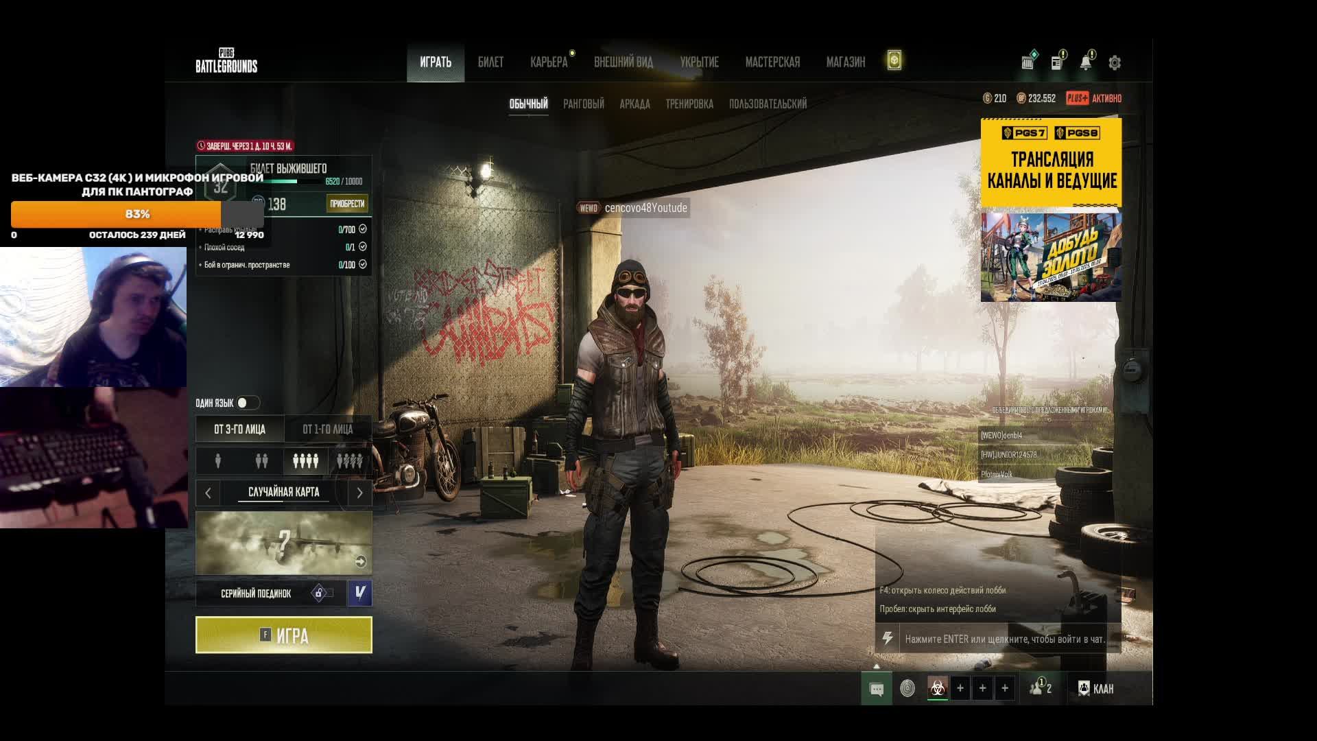 Привет! Добро пожаловать на стрим, самая большая поддержка для меня сейчас это лайк и подписка, поэтому если ты поставишь палец вверх и нажмешь на эту большую красную кнопку я буду очень благодарен мой Trovo https://trovo.live/dmitrypolyakow2010 донат https://www.donationalerts.com/r/gkqqh Группа в ка https://vk.com/public200923194 Telegram https://t.me/cencovo48 дискорд https://discordapp.com/channels/56952... ка https://vk.com/id90471262 мой кланhttps://lesta.ru/clans/wot/450150/ пк Характеристики Процессор AMD Ryzen 7 2700X Материнская плата MSI B350 TOMAHAWK Оперативная память A-Data XPG Gammix D10 [AX4U320016G16A-DR10] 32 ГБ Видеокарта GIGABYTE GeForce GTX 1070 1582MHz PCI-E 3.0 8192MB 8008MHz 256 bit DVI HDMI HDCP WINDFORCE OC rev. 1.0 Блок питания Thermaltake Москва 850W Монитор LG 29WP60G-B [29WP60G-B.ARUZ] клавиатура Defender Doom Keeper GK-100DL (45100) мышь A4Tech Bloody P81s Starlight Микрофон Trust Mico USB Microphone (20378) Веб-камера Defender C-090 Black музыкального центра LG XBOOM DM5360K наушники Sven AP-G888MV Корпус Middle Tower AeroCool "BattleHawk