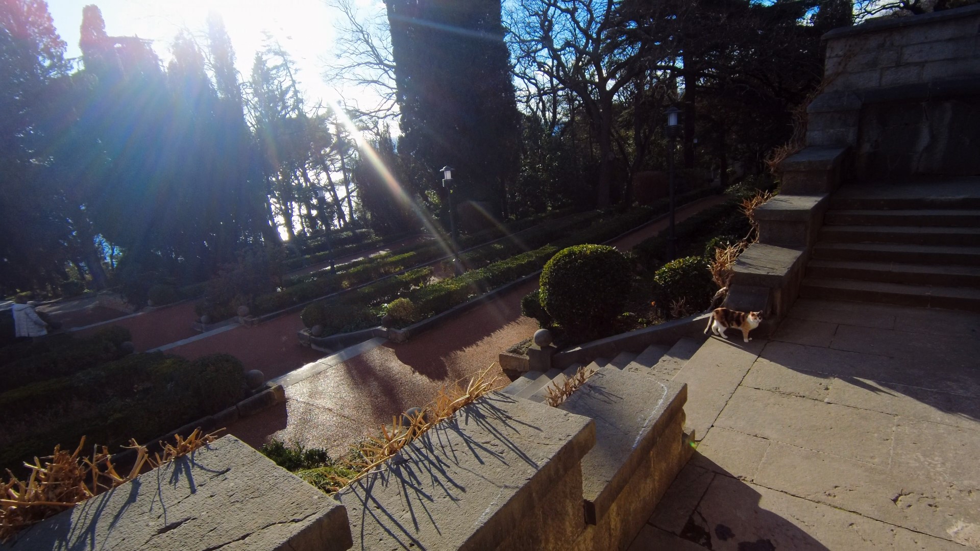 Крым. ЮБК. Гаспра. [4K] Санаторий Днепр. Гуляем по солнечному парку и кормим кошечку. ? 05.01.24