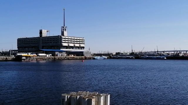 Вид на корабельный фарватер с набережной Галерного ковша. Васильевский остров