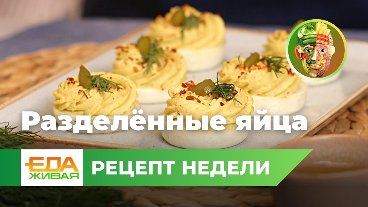 Рецепт недели в программе «Живая еда» на этот раз — «разделённые» яйца! Такая закуска украсит любой стол, а приготовление не займет много времени. Приятного аппетита ? Ингредиенты: ▫️Яйца — 6 шт. ▫️Растительное масло — 10 мл ▫️Кипяток — 500 мл ▫️Горчица — 1 ч. л. ▫️Йогурт без добавок — 2 ст. л. ▫️Чёрный перец — по вкусу ▫️Соль — по вкусу ▫️Острый соус — по вкусу ▫️Маринованный огурец — 1 шт. ▫️Хлопья красного перца — 1 ч. л. ▫️Зелень — по вкусу Приготовление: 1. Отделить белки, размешать их вилкой (но не взбивать!). 2. Форму для кексов смазать маслом. Разложить по ячейкам желтки и белки. 3. Скрутить две колбаски из фольги, положить на противень. Сверху поставить форму с яйцами. Налить в противень кипяток. Пьедестал нужен, чтобы яйца не варились, а запекались. Накрыть всю конструкцию фольгой и держать при 180 градусах около 15 минут. 4. Желтки переложить в чашу блендера. Туда же добавить горчицу, йогурт, чёрный перец, соль, несколько капель острого соуса и маринованный огурец. Измельчить до однородности. 5. Получившуюся массу переложить в кондитерский мешок с насадкой-звёздочкой. Нанести на белки. 6. Украсить хлопьями красного перца, свежей зеленью и ломтиками маринованного огурца. Наш сайт и социальные сети: Сайт «Живая еда с Сергеем Малозёмовым» — https://eda.show RuTube — https://home.strannik-j.org/channel/24739193 Телеграм — https://t.me/eda_show «Вконтакте» — https://vk.com/edashow Одноклассниках — https://ok.ru/edashow Яндекс.Дзен — https://zen.yandex.ru/edashow