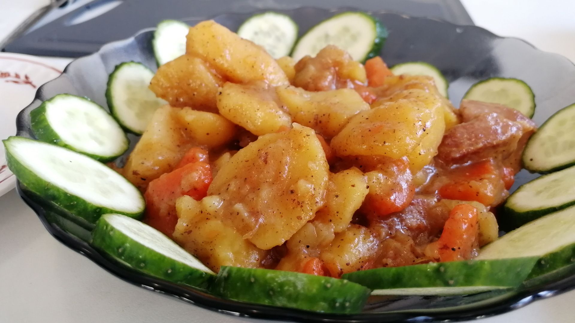 Быстрый и вкусный тушеный картофель со свининой.