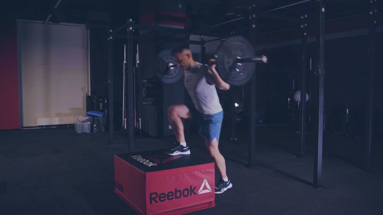 Попеременные зашагивания на коробку со штангой на плечах/ alternative barbell box step up