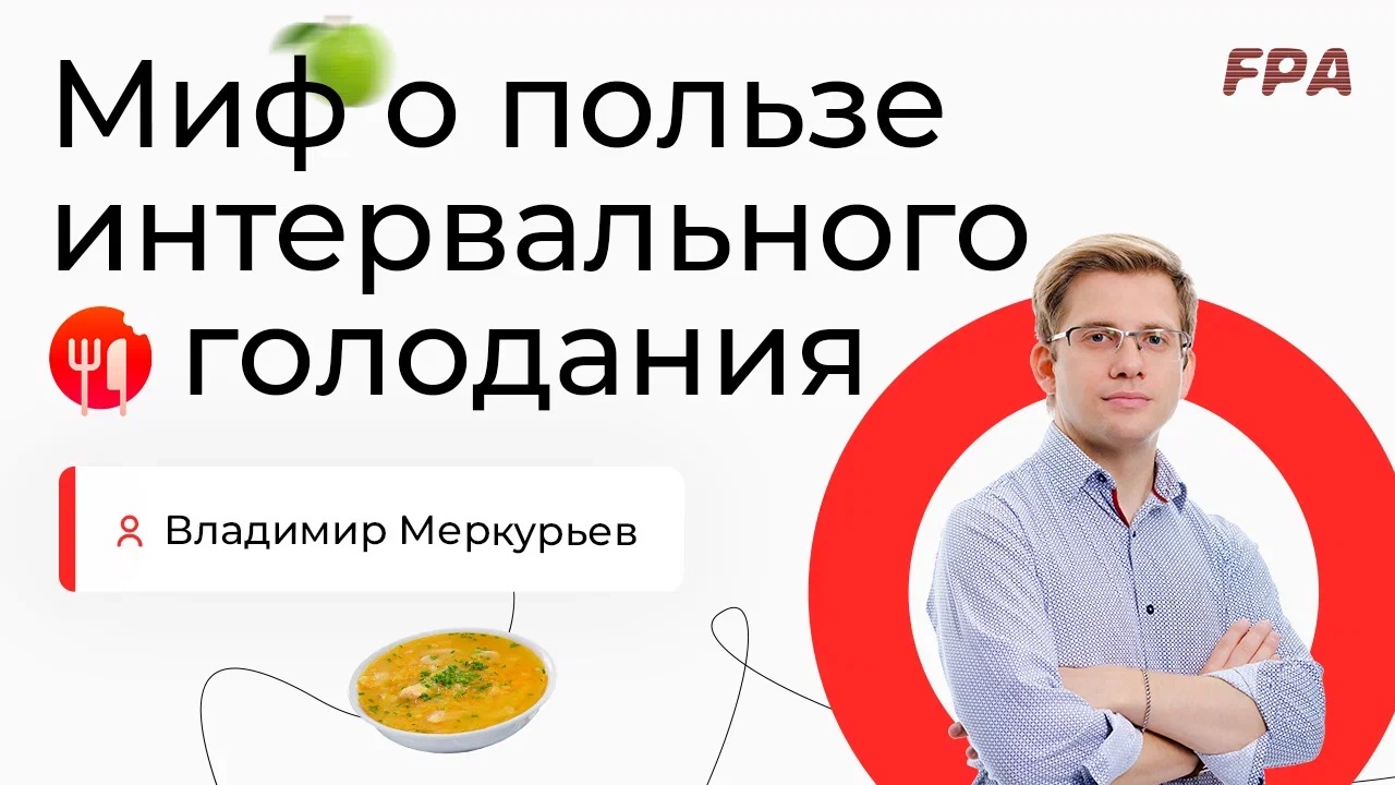 Интервальное голодание — сейчас одна из самых обсуждаемых тем. Миф о его пользе распространился очень широко. Дадим слово эксперту-преподавателю FPA, физиологу, кандидату биологических наук Владимиру Меркурьеву. Владимир Меркурьев https://t.me/fiziologmerkuryev — эксперт-преподаватель FPA, физиолог, кандидат биологических наук. Вебинар «Мифы и легенды физиологии и нутрициологии» смотрите полностью здесь ? https://youtu.be/lutrmjTR7i0 и делитесь впечатлениями в комментариях! __________ Ассоциация Профессионалов Фитнеса (FPA) - лидер на российском рынке фитнес-образования. С 2000 года в FPA сертифицировано более 22 000 специалистов. Наши выпускники работают более чем в 1000 клубах Москвы, России и стран зарубежья ? http://fitness-pro.ru/ __________ Дистанционные программы обучения: – Персональный фитнес-тренер: https://bit.ly/39A06Xr – Фитнес-нутрициолог: https://bit.ly/37oC14n — Инструктор групповых программ: https://bit.ly/3AUq3ip – Детский фитнес: https://bit.ly/34OjT4B __________ Очные программы обучения: – Персональный фитнес-тренер: https://bit.ly/2ONTH2K – Инструктор групповых программ: https://bit.ly/2uFh3Re __________ Мы в соцсетях: ВКонтакте: https://vk.com/fpafpa Telegram-канал: https://t.me/trenerskayaFPA Telegram-чат для тренеров: https://t.me/trenerskayaFPAchat Яндекс.Дзен: https://zen.yandex.ru/fitness_pro_ru