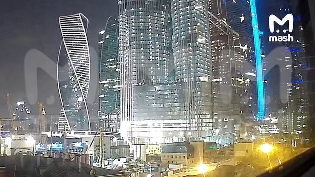 Момент попадания украинского БПЛА в строящееся здание в Москва-Сити. Яркая вспышка, взрыв, дым.