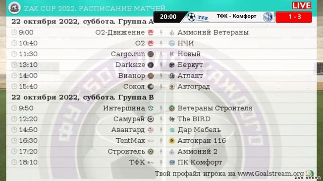 22.10.2022 ТФК - ПК КОМФОРТ LIVE 18:10 ZAK ARENA 2022