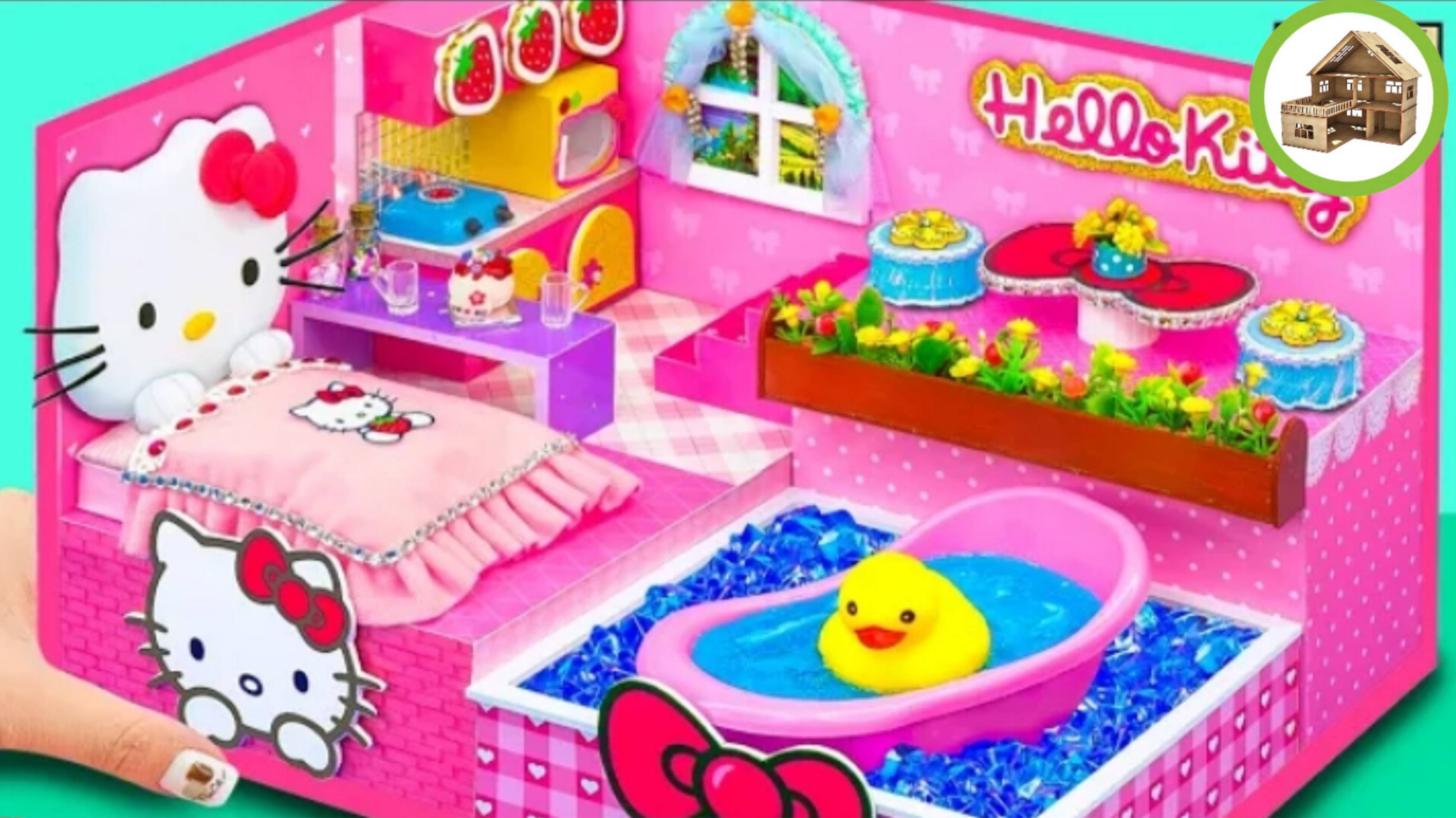 Розовый миниатюрный домик hello kitty с бассейном для и с кухней для слизи из картона /305