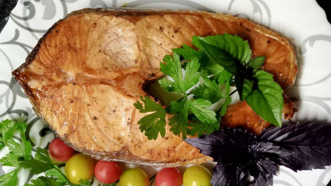 Попробуйте приготовить рыбу, не затрачивая много времени, не разыскивая сложные рецепты. У меня стейк из семги. Таким способом можно приготовить любую красную рыбу. Соль и черный перц добавила по вкусу. Три дольки лимона. Рыбку посолить, поперчить, слегка сбрызнуть лимонным соком, завернуть в фольгу и запечь в духовке при 180 градусах примерно минут 20-25. Подайте к столу с запеченными овощами и рисом. Очень вкусно, а главное просто! #еда #рыба #здоровое питание
