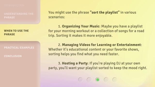 00:00 • Introduction - Mastering Playlists: Sorting It Out! 00:33 • Understanding the Phrase 01:09 • When to Use the Phrase 01:46 • Practical Examples