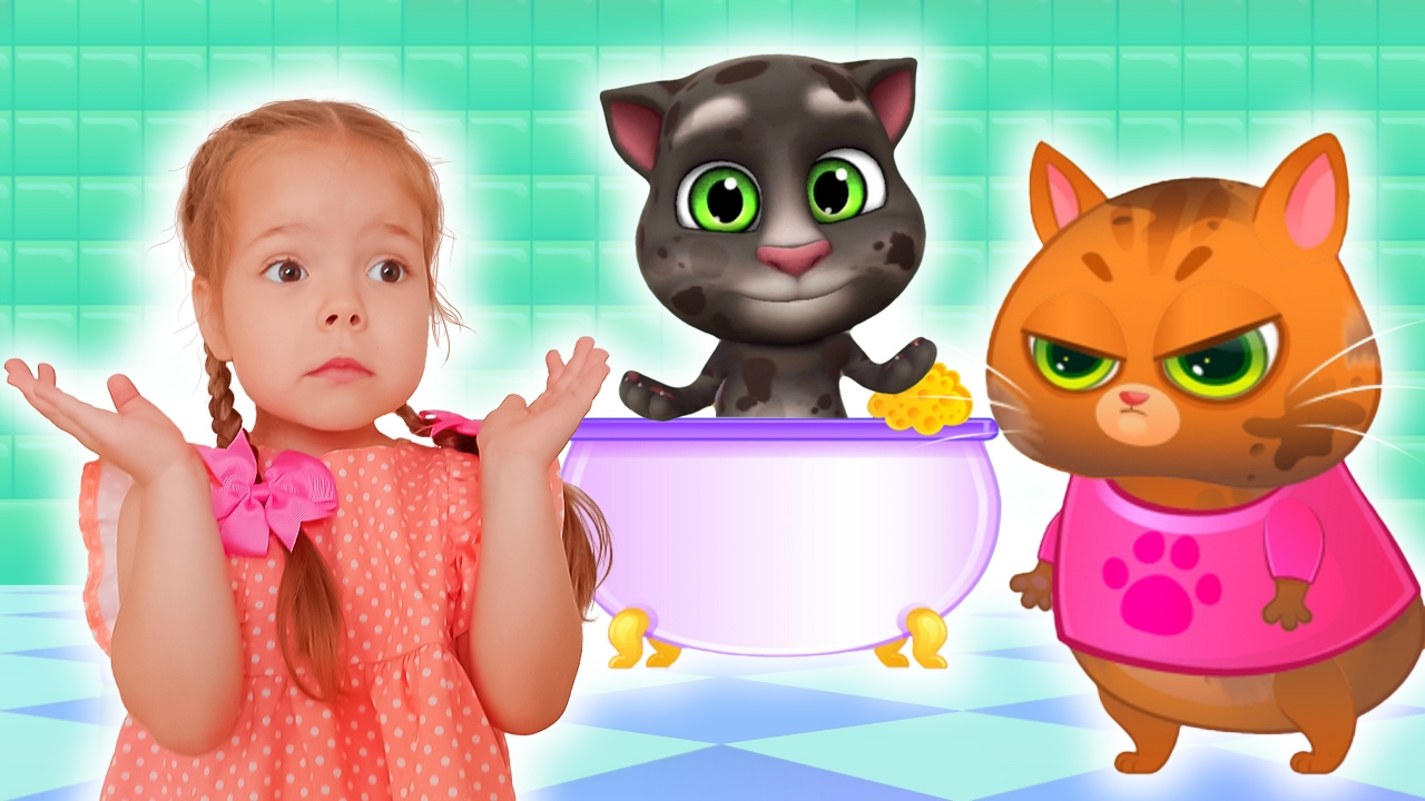 У Тома есть множество классных новых игрушек – от баскетбольного мяча и боксёрской груши до батута и качелей – но он хочет играть вместе с тобой! Ты можешь брать его на руки, заставлять его прыгать и помочь ему закинуть мяч в корзину. Ты можешь даже полетать с ним вместе! Но не бросай его слишком сильно, ведь у него может появиться вавка... Если это случится, то надень свой докторский халат и найди подходящее лекарство в его аптечном шкафчике! И не забудь давать Тому его любимые закуски и мыть его перед сном! Приготовься заботиться о своем новом лучшем друге в «Моем Говорящем Томе 2»! Котик Бубу любит поесть, поиграть и поспать и наша задача ему в этом помогать. Мультик котенок Бубу и Игра мой виртуальный питомец кот Бубу. Приключения рыжего котика. My virtual cat Bubbu. Мой Говорящий Том 2 попал к котику Бубу в гости. Бубу котик был очень удивлен появлению Тома и не знал что с ним делать. Tom 2 хотел играть в мячик и веселиться. Бубу котику пришлось звонить Насте, чтобы она помогла ему понять, что же хочет Говорящий Кот Том. Смотрите как Настя помогала своему другу котенку Буббу ухаживать за виртуальным питомцем Том 2.