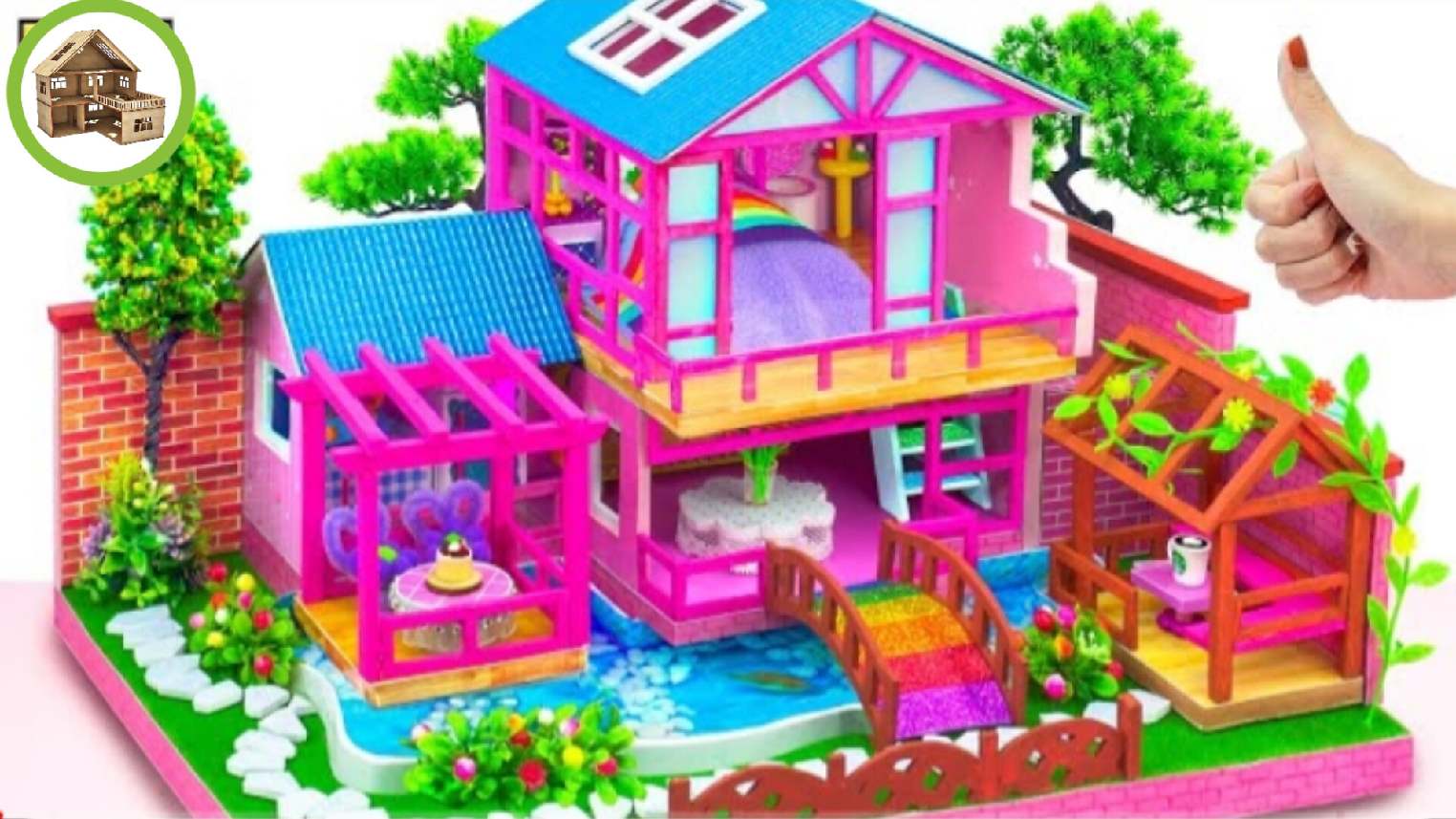 Миниатюрная двух этажная вилла с подземным аквариумом из картона /161