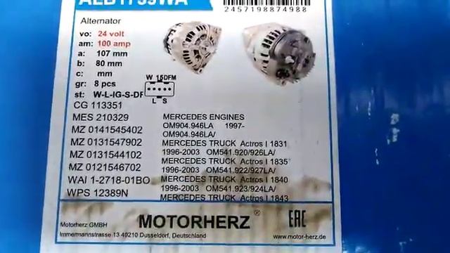 Всем здравствуйте! Узнать цену и наличие запчасти можно на нашем сайте по ссылке: https://truckdrive.ru/details/catalog/product/generator-mersedes-aktros-100a-alb1739wa/ Если Вам нужны запчасти для грузовиков - просто позвоните нам по телефону 8-800-500-72-25 или оформите заказ на сайте https://truckdrive.ru/ . У нас быстрая доставка и отправка по России. Номера аналогов: 0001504750, 0101543902, 0111548202, 0111548702, 0117063, 0121541102, 012154110226. У нас можно купить любые запчасти для грузовиков Ман, Мерседес, Вольво, Рено, Даф, Скания, Ивеко и полуприцепов импортного производства Шмитц, Крона, Кегель, Шварцмюллер и др. Ждем Ваших лайков, подписывайтесь на наш канал. Мы на постоянной основе добавляем новые видео обзоры различных запчастей.