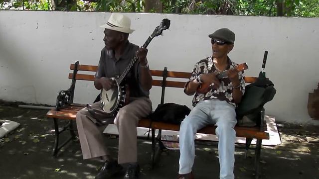 2 old Pops playing banjo in Panama