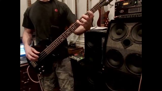 Schecter SB-1 Bass, Ernie Ball Slinkys, Line 6 Bass POD Pro (Aguilar DB750 amp model), Eb tuning