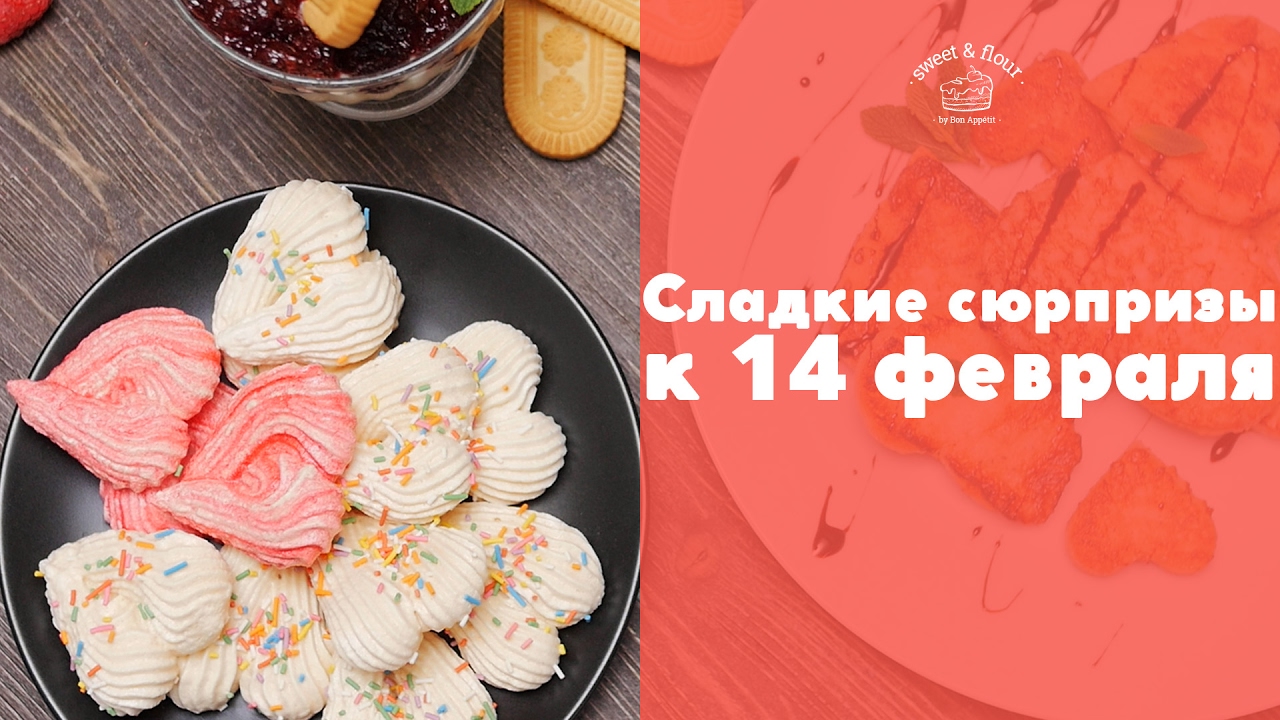 Если вы считаете, что магазинные валентинки уже всем изрядно приелись, то приготовьте парочку сладких сюрпризов к 14 февраля! Мы потрудились над шикарной подборкой рецептов и желаем вам сладкого праздника! Романтический вишневый дип Ингредиенты: Маскарпоне — 350 г Сгущенное молоко — 250 г Вишневое варенье — по вкусу Печенье — для подачи Приготовление: Взбейте маскарпоне со сгущенкой. Выложите в форму. Равномерно распределите. Распределите сверху варенье. Охладите перед подачей. Подавайте с печеньем. Безе для влюбленных Ингредиенты: Яичный белок — 100 г (3-4 шт.) Сахарный песок — 350 г Кондитерская посыпка — для украшения Приготовление: Взбейте белки в крутую пену. Продолжая взбивать, введите порциями сахар. Доведите массу до устойчивых пиков. Поместите в кондитерский мешок. Отсадите на противень, формируя сердечки. Украсьте посыпкой. Сушите (100 °C) 90-120 минут. Французские тосты “Валентинки” Ингредиенты: Тостовый хлеб — 8 ломтиков Сливки 33% — 180 мл Куриное яйцо — 1 шт. Молотая корица — ½ ч. л. Сахарный песок — 1 ст. л. Сливочное масло — для жарки Приготовление: Вырежьте из хлеба сердечки. Взбейте сливки, яйцо, сахар и корицу. Пропитайте заготовки смесью. Подрумяньте на раскаленном масле. sweet & flour - видео рецепты выпечки и десертов на каждый день! Мы в социальных сетях: ВКонтакте: https://vk.com/swtnflour Instagram: https://www.instagram.com/swtnflour/