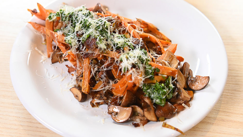 Картофель с грибами. Картофельный салат. Батат с шампиньонами и трюфельным маслом