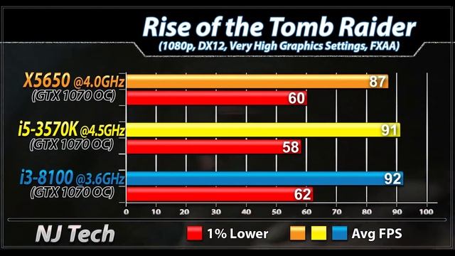 Xeon X5650 (4.0GHz) Vs. i5-3570K (4.5GHz) Vs. i3-8100 (3.6GHz) | New Games Benchmarks In this Video I'll Show You Workstation and Gaming Benchmarks of intel Xeon X5650 Vs. intel Core i5-3570K Vs. intel Core i3-8100 (All Paired with GTX 1070 Overclock) System Spec: intel Xeon X5650 @ 4.0GHz ASUS P6T Deluxe V2 16GB DDR3 RAM @ 1866MHz intel Core i5-3570K @ 4.5GHz Gigabyte GA-Z68-D3H Mobo 16GB DDR3 RAM @ 1866MHz intel Core i3-8100 @ Stock Gigabyte B360M-DS3H Mobo 16GB DDR4 RAM @ 2133MHz MSI GTX 1070 Gaming X 2TB HDD 1080p Gaming Test : Monster Hunter World Far Cry 5 Warhammer Vermintide Kingdom Come Deliverance Fortnite Battle Royale Star Wars Battlefront 2 Assassin's Creed Origins Call of Duty World War 2 Wolfenstein 2 Middle-Earth : Shadow of War Battlefield 1 PlayerUnknown's : BattleGround Rise of the Tomb Raider Grand Theft Auto 5 The Witcher 3 : Wild Hunt Rainbow Six Seige Overwatch CSGO Dota 2 Also Watch- Core i5-8600k Benchmarks/Comparison Playlist - https://goo.gl/kjuFhB Core i7-8700 Overclocked Benchmarks/Comparison Playlist - https://goo.gl/LXxpdo GTX 1070 Ti Benchmarks/Comparison Playlist - https://goo.gl/rmLg9T Ryzen 1200 Benchmarks/Comparison Playlist - https://goo.gl/g3BFXj Coffee Lake CPU Benchmarks/Comparison Playlist - https://goo.gl/4nY8vm Core i7-8700K Benchmarks/Comparison Playlist - https://goo.gl/mdJ6Ub GT 1030 Benchmarks/Comparison Playlist - https://goo.gl/PgPZJY ALL Benchmarks/Comparison Playlist - https://goo.gl/njtyMF Requested Benchmarks/Comparison Playlist - https://goo.gl/4idZne if You Requested any Benchmarks or Comparison before... Please Check Requested Benchmarks Playlist - https://goo.gl/4idZne Thanks For Support and Watching My Video... Please Subscribe my Channel For More updates News.... Twitter - twitter.com/njtech0 facebook - fb.me/njtech0 Email - njtech52@gmail.com Background Music: Ampyx Rise [NCS Release] Intro: Nishanth Kundar Elegant logo