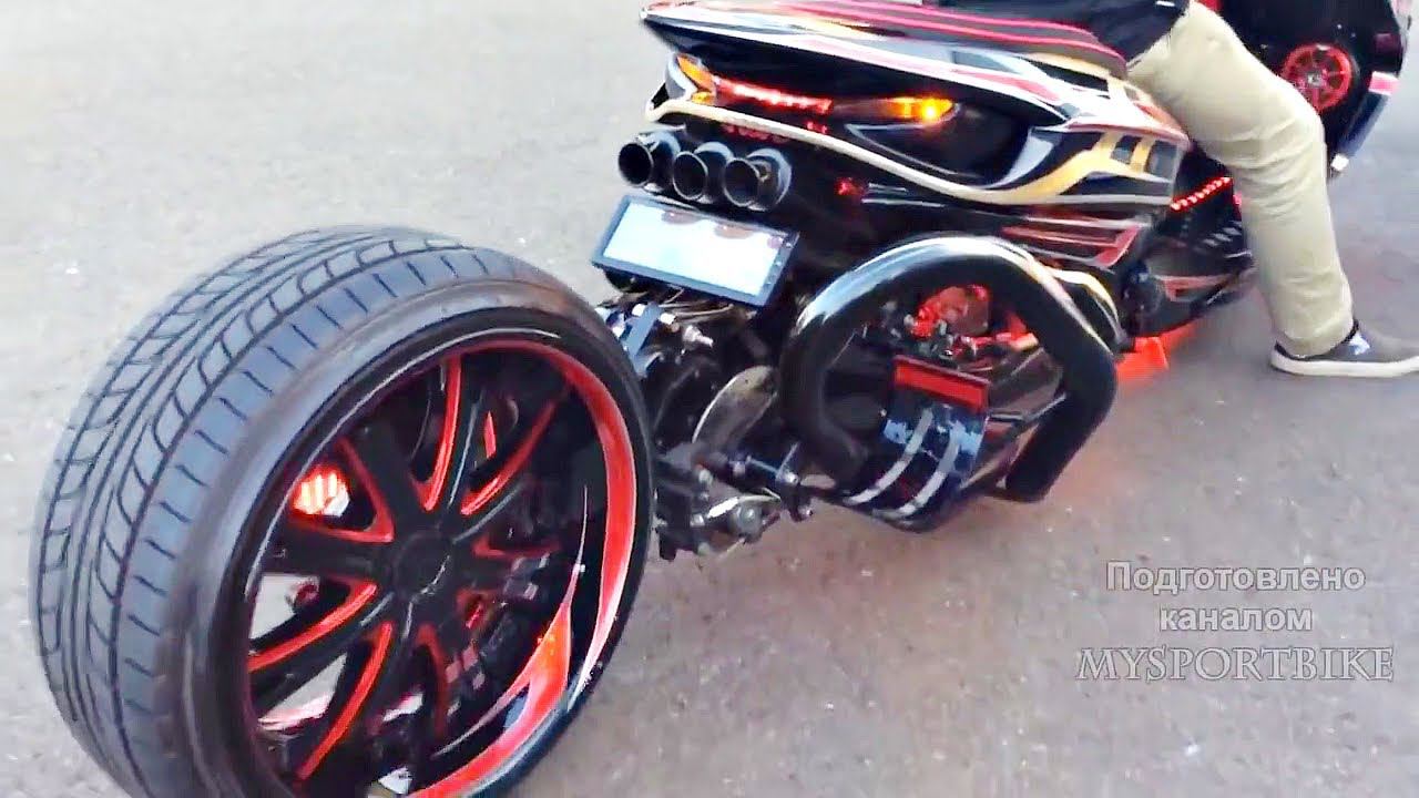 ✅ Если ты создал Кастом и хочешь чтобы о нем узнали все - напиши мне ! #Скутер #Мопед #Кастом #Япония #СкутерыЯпония Скутеры весьма популярны, пожалуй, во всех странах мира, но, наверное, только в Японии могло возникнуть и развиться до подобных масштабов особое направление в их тюнинге. Как известно, скутер самый дешевый вид двухколесного транспорта, следовательно стать обладателем мопеда и заняться его доводкой может практически каждый.И потому Развившееся несколько лет назад среди молодежи направление, продолжает процветать, обеспечивая авторитет в своей среде обладателям необычных транспортных средств и удивляя прохожих. В Японии одним из основополагающих моментов в этом вопросе является увеличение колесной базы, говоря проще, скутер делают длиннее. При этом он обрастает всевозможными аэродинамическими обвесами и накладками. Их предлагают и сами производители, причем стоимость полного комплекта может достигать нескольких сотен тысяч иен, что по цене может сравниться с самим скутером. В почти обязательный перечень проводимых работ входит снижение дорожного просвета до чисто гипотетических величин: подобные скутеры вряд ли смогут передвигаться вне пределов японских дорог.И конечно же куда без пневмотической подвески,японцы тоже ее очень любят.И благодаря ей,они при каждой стоянке опускают свой скутер на асфальт. Замена стандартных шин на сверхширокие (по скутерным меркам) тоже встречается часто,а легкосплавные колеса с шикарным дизайном дисков - один из атрибутов.Также в скутер устанавливается хорошая акустика а некоторые раскошеливаются и на мониторы. Scooters are extremely popular probably in all countries of the world, but perhaps only in Japan could occur and develop to such a scale of particular direction in their tuning. As you know, the scooter is the cheapest type of two-wheeled transport, therefore, to become the owner of a moped and do his finishing can almost everyone.And consequently Developed a few years ago among young people, the direction continues to thrive, providing authority among the owners of unusual vehicles and surprising the passersby. In Japan, one of the fundamental points in this issue is to increase the wheelbase, to put it simply, the scooter is made longer. At the same time it acquires all sorts of aerodynamic body kits and pads. They are offered by the manufacturers themselves, and the cost of a complete set can reach several hundred thousand yen, which at the price can compare with the scooter itself. The almost mandatory list of works includes reducing the ground clearance to purely hypothetical values: such scooters are unlikely to be able to move outside the limits Japanese roads.And of course, without the pneumatic suspension, the Japanese also love it very much.And thanks to it, they at each Parking lower the scooter on asphalt. Replacing standard tires with ultra-wide (by scooter standards) is also common,and alloy wheels with a chic design of disks - one of the attributes.Also in scooter is installing the good acoustics and some fork out and on monitors.