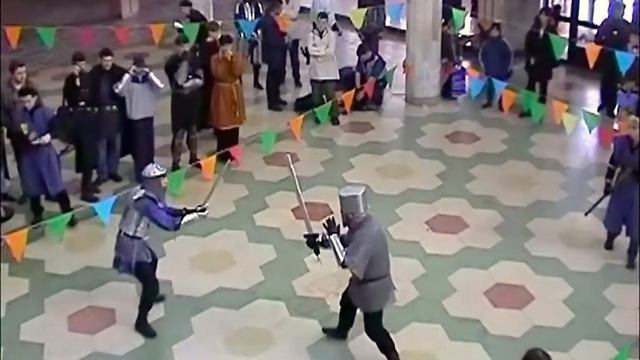 Турнир по историческому фехтованию "Черепаха, быстрая как ветер", г. Астана, Республика Казахстан. 21 марта 2004 года. Фойе "Дворца школьников". Участники и тайминг под катом. Номинация "Меч" - Клуб "Кромлех" (г.Астана) 1. Илья "Дирк Вороний клюв" Гук / 1 место 2. Вадим "Готфрид" Алтухов 3. Николай "Николас" Юркавец 4. Александр "Чин" Чин 5. Артём "Коннал Дейн МакСимсон" Максимцев 6. "Тимур ибн Кабкен" - Клуб "Легион" (г.Петропавловск) 7. Евгений "Тир Бёльверксон" Лукашов / 2 место 8. Виталий "Атли Бёльверксон" Лукашов 9. Геннадий "Сигурд" Калякин - Клуб "Радогор" (г.Астана) 10. Алексей "Балеог" Недопёкин 11. "Ратибор" 12. "Варк Гримм" 13. "Алёша" 14. "Ратмир" 15. "Ингвар" - Клуб "Дружина" (г.Павлодар) 16. Артём "Агнист" Ашанин Номинация "Щит-Меч". - Клуб "Кромлех" (г.Астана) 1. Владислав "Торин" Шпаков / 1 место 2. Владимир "Роланд" Алтухов 3. Денис "Гисли" Кузин 4. "Рёмман" - Клуб "Легион" (г.Петропавловск) 5. Антон "Фримен" Крикушин / 2 место 6. Дмитрий "сэр Роберт" Денисов / Приз за лучший доспех 7. Алексей "Алексей" Бондаренко - Клуб "Дружина" (г.Павлодар) 8. Дмитрий "Даймон" Ерофеев Тайминг: 00:00:50 Дирк Вороний клюв VS Сигурд. Победитель: Дирк Вороний клюв 00:04:50 Агнист VS Готфрид. Победитель: Готфрид 00:08:45 Атли Бёльверксон VS Чин. Победитель: Чин 00:11:35 Тир Бёльверксон VS Коннал Дейн МакСимсон. Победитель: Тир Бёльверксон 00:14:35 Даймон VS Роланд. Победитель: Роланд 00:17:50 Фримен VS Торин. Победитель: Торин 00:20:37 Ратибор VS Варк Гримм. Победитель: Ратибор 00:22:15 Алёша VS Ратмир. Победитель: Алёша 00:24:20 Тимур ибн Кабкен VS Балеог. Победитель: Балеог 00:28:00 Ингвар VS Николас. Победитель: Николас 00:30:20 Гисли VS сэр Роберт. Победитель: Гисли 00:32:53 Рёмман VS Алексей. Победитель: Рёмман 00:35:05 Варк Гримм VS Дирк Вороний клюв. Победитель: Дирк Вороний клюв 00:37:00 Ратмир VS Коннал Дейн МакСимсон. Победитель: Коннал Дейн МакСимсон 00:38:33 Готфрид VS Балеог. Победитель: Готфрид 00:40:35 Чин VS Ингвар. Победитель: Чин. 00:42:02 Роланд VS Гисли. Победитель: Гисли 00:43:40 Сигурд VS Ратибор. Победитель: Ратибор 00:44:10 Тимур ибн Кабкен VS Агнист. Победитель: Агнист 00:46:15 Алёша VS Тир Бёльверксон Победитель: Тир Бёльверксон 00:47:53 Атли Бёльверксон VS Николас. Победитель: Николас 00:48:34 Даймон VS сэр Роберт. Победитель: Даймон 00:50:13 Фримен VS Алексей. Победитель: Фримен 00:51:12 Балеог VS Агнист. Победитель: Балеог 00:54:35 Ратибор VS Дирк Вороний клюв. Победитель: Дирк Вороний клюв 00:56:37 Готфрид VS Тимур ибн Кабкен. Победитель: Готфрид 00:58:41 Коннал Дейн МакСимсон VS Алёша. Победитель: Алёша 01:01:10 Николас VS Чин. Победитель: Николас 01:03:14 Гисли VS Даймон. Победитель: Даймон 01:05:14 сэр Роберт VS Роланд. Победитель: Роланд 01:06:30 Торин VS Алексей. Победитель: Торин 01:08:40 Гисли VS Фримен. Победитель: Фримен 01:11:00 Торин VS Даймон. Победитель: Торин 01:13:29 Дирк Вороний клюв VS Николас. Победитель: Дирк Вороний клюв 01:15:40 Готфрид VS Тир Бёльверксон. Победитель: Тир Бёльверксон (ничья) 01:18:45 Фримен VS Торин. Победитель: Торин 01:24:00 Дирк Вороний клюв VS Тир Бёльверксон. Победитель: Дирк Вороний клюв 01:27:20 Награждение