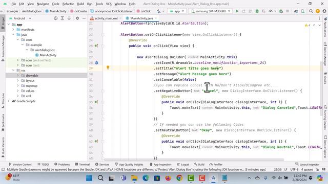 How to create an alert dialog box in Android Studio using Java | Android Studio Alert dialog
