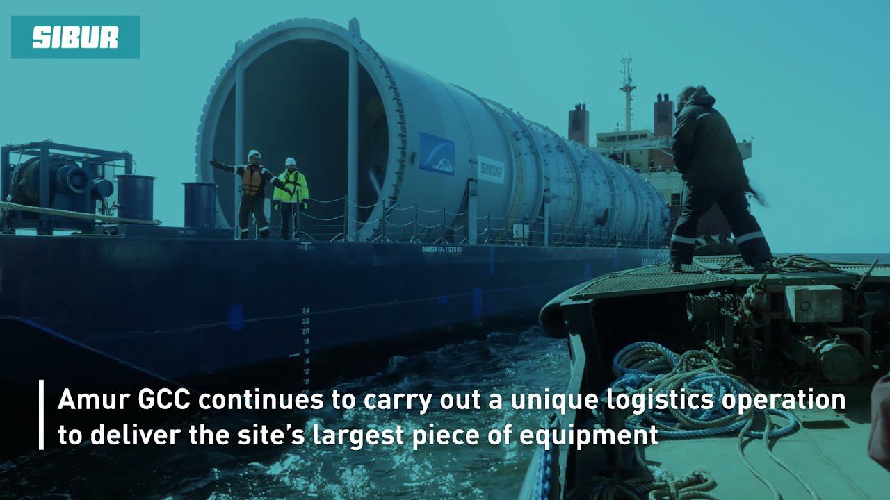 Amur GCC, a SIBUR and Sinopec joint venture which is set to become one of the world’s largest and most modern basic polymer production facilities, continues to carry out a unique logistics operation to deliver the site’s largest piece of equipment – the steam cracker column. The column sailed most of the route from the port of Masan (South Korea) on the cargo ship Sun Rise, before being loaded onto a mega-barge – the Tomsk – at the port of De-Kastri (the Khabarovsk Territory). The barge needed to be partially flooded with water to balance the barge load, after which it was towed to the mouth of the Amur River and further up the Zeya River to the Amur GCC pier. When delivered, the column will have travelled around 5,000 km in total. Meanwhile, at the steam cracker construction site, concrete for the base of the cracking furnaces has been poured and work has begun laying the foundations of the pyrogas wet cleaning plant. All other areas of the enormous AGCC site are following the construction roadmap closely. For the full Amur GCC construction update for May, take a look at SIBUR’s YouTube channel: #AGCC #SIBUR #Sinopec