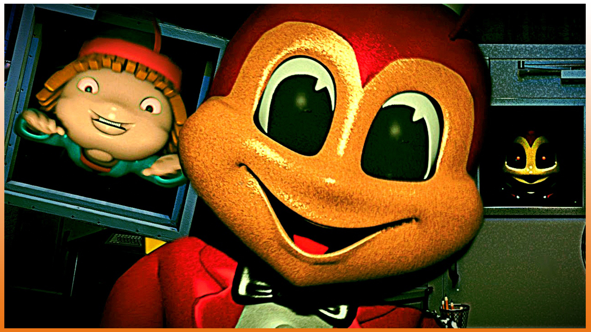 На Филиппинах имеется сеть фастфуда, которой уже несколько десятков лет под названием Jollibee's. Там, как и в вымышленной пиццерии Фредди Фазбера – персонажи, символизирующие это заведение. Всего их пять и каждый из них имеет уникальный внешний вид. Охранник работает с полуночи до шести часов утра и в это время случаются самые разнообразные неожиданности. Добравшись до своего офиса начинается настоящее испытание. Нам звонят и объясняют принцип работы, вводя в курс дел. В этот момент становится понятно, что придется выживать и наше пребывание в этом месте не будет безопасным. Каждый из пяти аниматроников фастфуда имеет улыбчивый внешний вид, но на самом деле они пытаются навредить охраннику, принимая его за виновника бед умерших детей. Аниматроники Jollibee's 1 и 2 НоЧь (2022)
