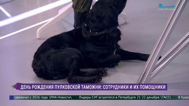 В студии программы «Утро в Петербурге» Александра Бунькова, старший инспектор Пулковской таможни и русский охотничий спаниель Патрик.