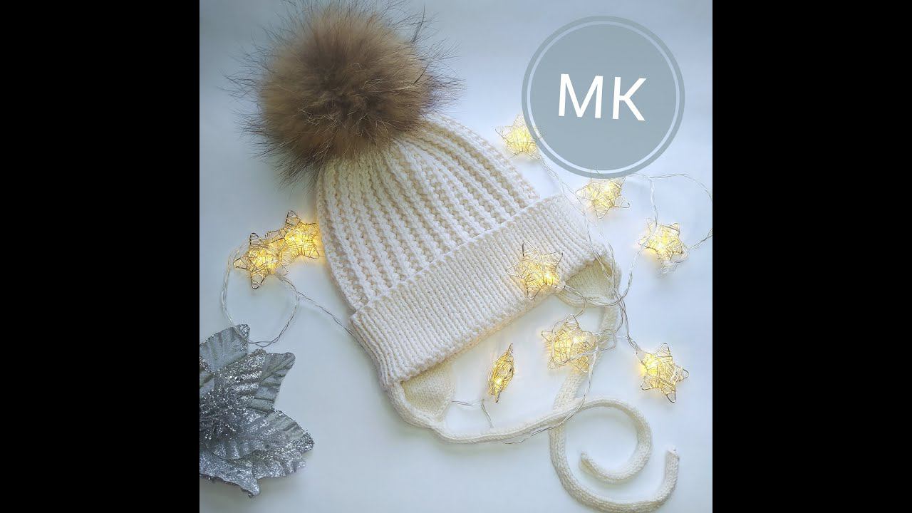 МК детская шапка спицами с завязками