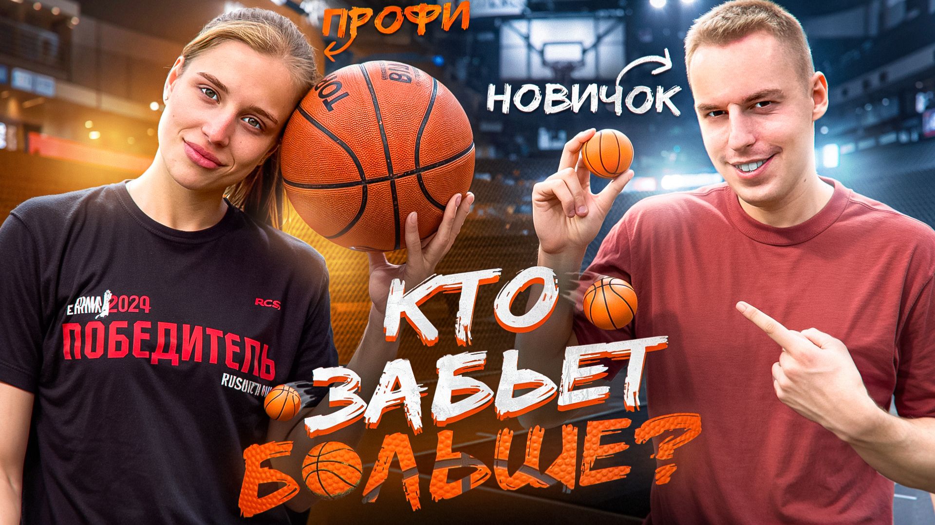 VK - https://vk.com/alymov_sergey Телеграм-канал Полины - https://t.me/polarkiss VK Полины - https://vk.com/p.karahanova --- Содержание: 00:00 Начало 00:39 Размеры баскетбольных мячей 01:18 Почему американцы лучше играют в баскетбол? 01:33 Как проверить насколько накачан мяч? 01:48 Разминка 02:17 Про травму на физкультуре 02:45 Отжимания на пальцах 03:22 Обучение дриблингу 03:51 Какую обувь покупать для баскетбола? 04:16 Резиновая крошка или асфальт? 04:45 Интересные истории из спортшколы 06:01 Бросаем в кольцо 06:59 Про баскетбольные клубы, лиги и зарплаты 08:21 Крутим мяч на пальце 09:01 Кидаем трехочковые броски 09:23 Какие фирмы баскетбольных мячей лучше покупать? 09:52 Почему не стоит брать дешевые баскетбольные мячи? 10:14 Играем в стритбол 12:07 Челлендж. Кто забьет больше со штрафной линии новичок или профессионал? 14:44 Конец В этом ролике я попытаюсь обыграть профессионального игрока в баскетбол, в конце мы попробуем бросать со штрафной линии разные мячи #баскетбол #челлендж #соревнование