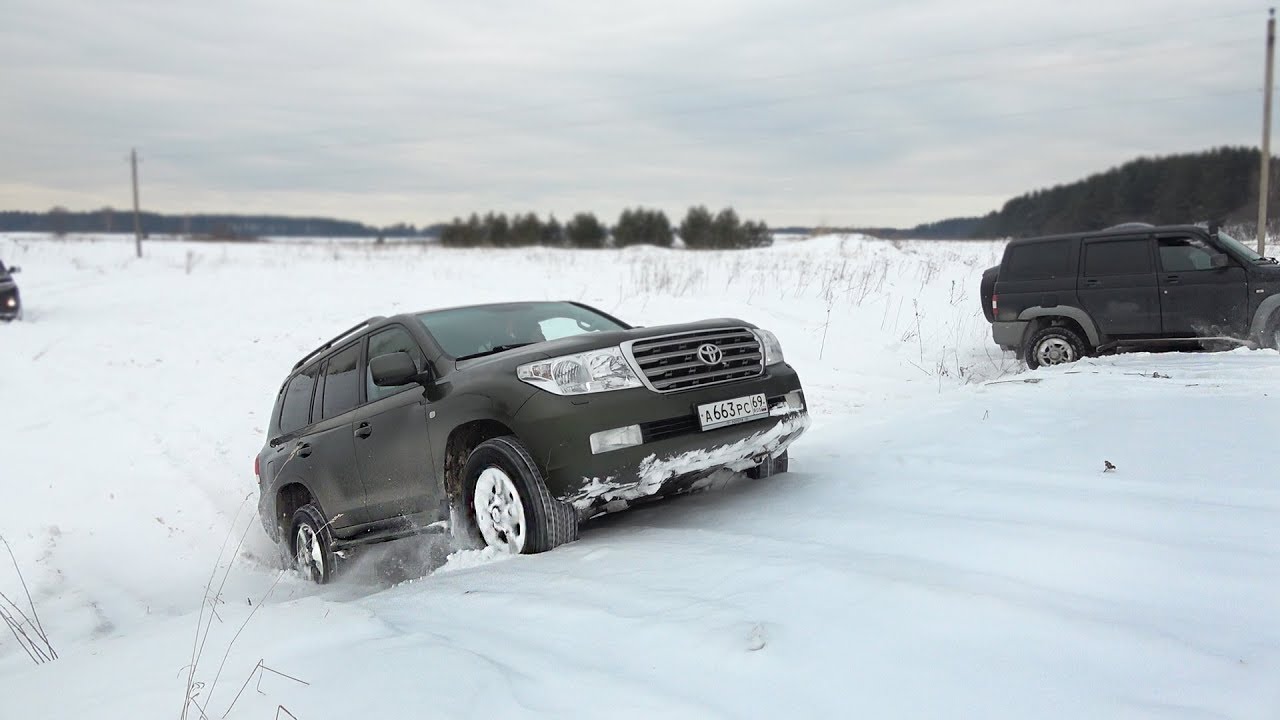 Испытав Land Cruiser 80, мы взялись за Land Cruiser 200. испытания на бездорожье против УАЗов (UAZ) и полноприводного Соболя. Битва проходит на заснеженном полигоне. Помимо проходимости испытаем участников на скорость прохождения снежной целины и свежих подъёмов. В перспективе испытаем на проходимость Лендкрузер Прадо (Toyota Land Cruiser Prado)