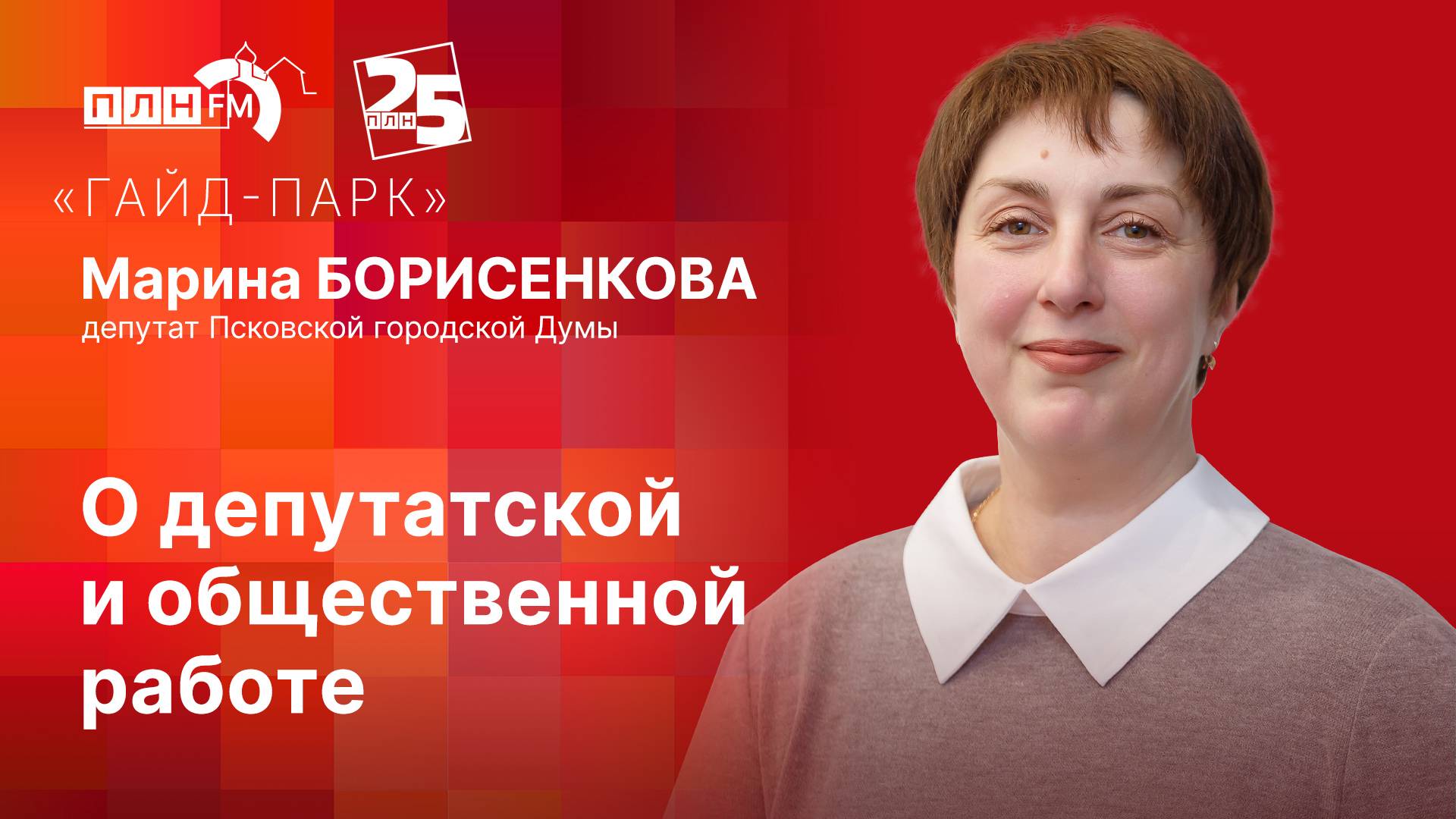 Гость: депутат Псковской городской Думы Марина БОРИСЕНКОВА Ведущая: Любовь КУЗНЕЦОВА -- Видео ПЛН-ТВ