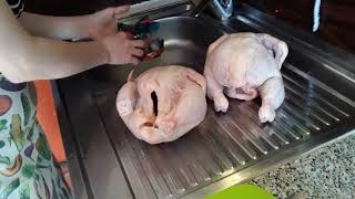 Здравствуйте. Покупка курицы впрок явление обыденное. Зарплата или пенсия означает закупки стратегического запаса продуктов. Дальнейшая судьба пернатых, если не планируется пустить ее в дело сразу же -пополнить население морозилки. Конечно, можно без лишних заморочек засунуть тушку в морозилку целиком, хоть прямо в магазинном пакете. Не в одном десятке рецептов она нужна именно такой, "в сборе". Но чаще всего полнокопмлектная птичка мне не нужна, а размораживать ее, отпиливать запчасти - это что же будет с курочкой после пары заморозок-разморозок? Поэтому, как дразнит папа, играю в авиаразборку (куры же крылаты, как-никак), шасси, крылья, фюзеляжи - все отдельно, разбираю на запчасти заранее, до морозилки, предварительно помыв. Кожу у меня дома никто не празднует, и до страусиной, чтобы из нее куртки шить, она не дотягивает. Потому кожа идет в отвал, снимаю ее с курицы, отслаивая рукой, как этакий комбинезон, отрезая лишь там, где она прирастает наглухо, как, например, на концах крыльев. Да и возни с обпаливанием избегаю заодно. Далее немного садизма - рукой откручиваю по суставам крылья и лапы, нахожу на ощупь суставы, растягиваю их и отрезаю ножом мягкие ткани, не мучаясь с перерезанием костей. И осколков нет, все аккуратно. Отрезаю хвостик и делю тушку на тазовую и грудную части, так же предварительно выкрутив хребет. Лапы и крылья делю аналогичным способом. Концевые части крыла кулинарной ценности не имеют и отправляются к коже. А ноги разделяются на бедра и голени. Остается отслоить рукой (не без некоторой помощи ножа) грудку. К концу работы на салфетке разложены отдельно два больших и два маленьких филе, бедра, голени и крылья. Вот так, по рубрикам, я и разложу их по пакетам и помещу в морозилку. Быстро и удобно - достала пакет и можно сразу готовить, без разделок, сортировок, всего-то 15 минут повозиться до замораживания. А каркасы сразу идут в кастрюлю, хорошенько провариться, из них получу бульон и еще изрядно отварной курятины для салатов или начинок, в сыром же виде снять ее с костей практически невозможно. Фактически, потери мяса удается минимизировать. Авторство способа себе ни в коем случае не приписываю, сама подсмотрела в свое время. Если же он и вам пригодится - буду рада. Буду очень благодарна за ваши отзывы и КОНСТРУКТИВНУЮ критику. Поддержите развитие канала - подпишитесь, поставьте лайк. Спасибо.