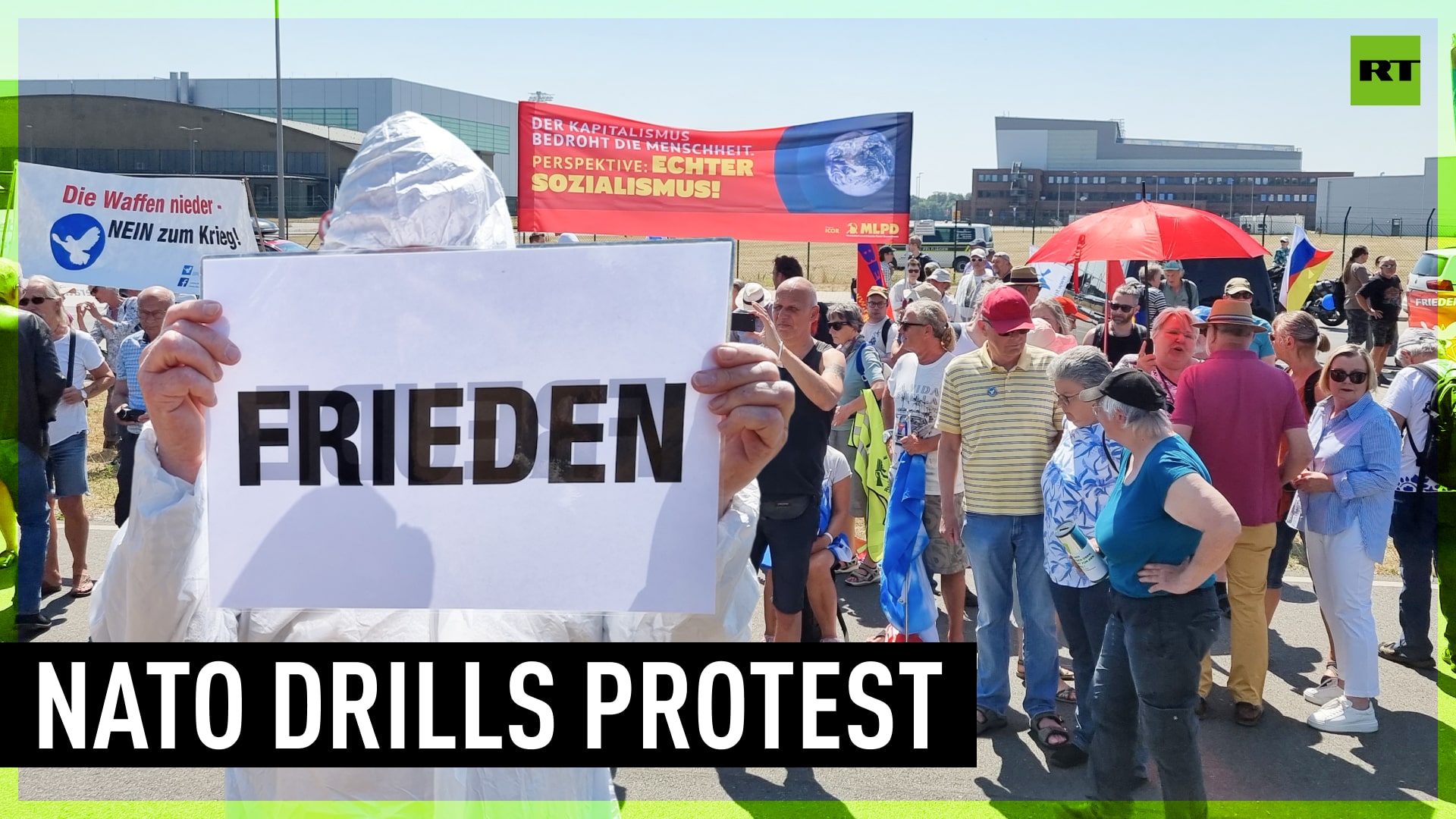 Hundreds of activists marched in front of Wunstorf Air Base against NATO’s Air Defender 2023 military drills. The protesters demanded a ceasefire and peace negotiations in Ukraine, as well as the removal of US nuclear weapons from Germany. ----------------------------------------------------------------------------------------------- Freedom over censorship, truth over narrative. Follow us on Facebook: https://www.facebook.com/RTnews Follow us on Telegram: t.me/rtnews Follow us on Twitter: https://twitter.com/RT_com