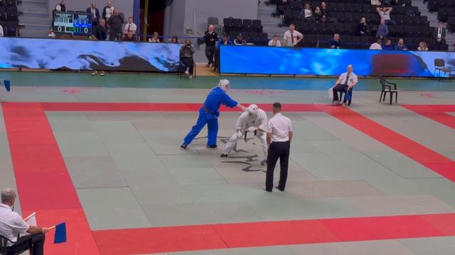 14.12.2025 в Москве прошло Первенство России по кудо. Финал в категории до 270+ ед. 16-17 лет. В синем Михаил Кулаков (ДВФО, Приморский край), в белом Кирилл Колесниченко (ЦФО, Белгородская обл.).