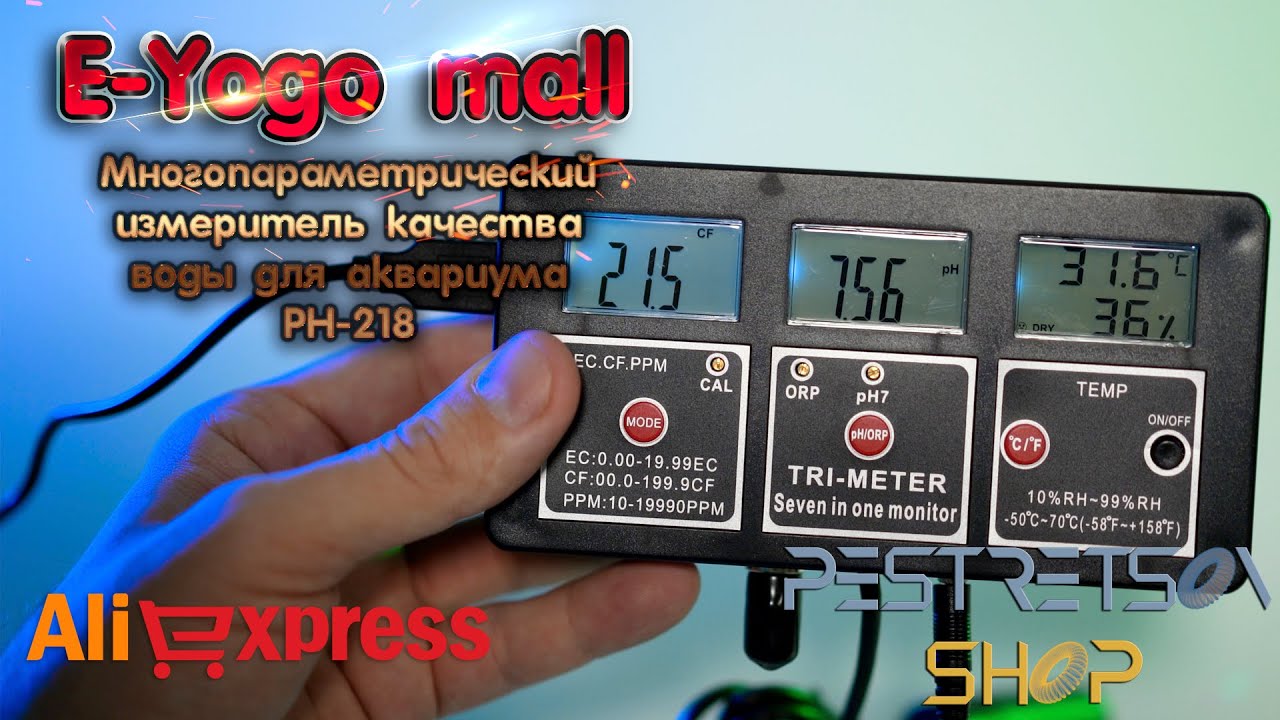 ? Стационарный комбинированный монитор РН-218 pH, ORP, EC, TDS, Temp, RH- метр для аквариума Устройство специально разработано для долгосрочного мониторинга pH, солености и температуры воды, ОВП (окислительно-восстановительного потенциала) в аквариуме или аквариумах, влажности в помещении в течение 24 часов в режиме реального времени. Контроллер – используется для мониторинга уровня pH в реальном времени и контроля (поддержки, регулировки) уровня рН. Применяется в аквариумах, Прибор выполнен из прочного качественного пластика. Технические характеристики: Диапазон измерения • : pH: 0,00 ~ 14.00pH • RH: 10% ~ 99% RH • Температура: -50 ℃ ~ 70 ℃ (-58 °F ~ 158 °F) • EC: 0,00 ~ 19.99EC • CF: 0,0 ~ 199.9CF • TDS: 10 ~ 19990ppm Дискретность: • pH: 0.01pH • RH: 1% относительной влажности • Температура: 0,1 ℃ (0,2 °F) • EC: 0.01EC • CF: 0.1CF • TDS: 10ppm Погрешность: • pH: ± 0.1pH • RH: 5% относительной влажности • Температура: ± 1 ℃ (± 2 °F) • EC,CF,TDS: ± 2% f. S Особенности: • Переключаемый температурный блок ℃/℉. • Высокочувствительный электродный зонд для быстрого и точного измерения. • Три ЖК-экрана с белой подсветкой для четкого отображения значения pH, значения солености и температуры и влажности. • Компенсация температуры: 0 ℃ ~ 50 ℃ (32 °F ~ 122 °F) Комплект поставки: 1. Монитор РН-217 2. Адаптер DC 6V 3. Калибровочная отвертка 4. Крепление для стационарного размещения 5. Фирменная коробка 6. Инструкция на англ. 7. Гарантийный талон ? Для желающих поддержать монеткой :) Разовый донат https://new.donatepay.ru/@pestretsovshop ?? Привет, Я Дмитрий! Задавайте вопросы по товару :) Буду рад пообщаться со всеми! ? Продажа на площадках Aliexpress: https://clck.ru/aHJ4B ❗Очень ВАЖНО☝☝☝ ?Нажать В топ? : ✍И Подписаться на канал!✍ : #phметр #phметрсалиэкспресс #tdsmeter