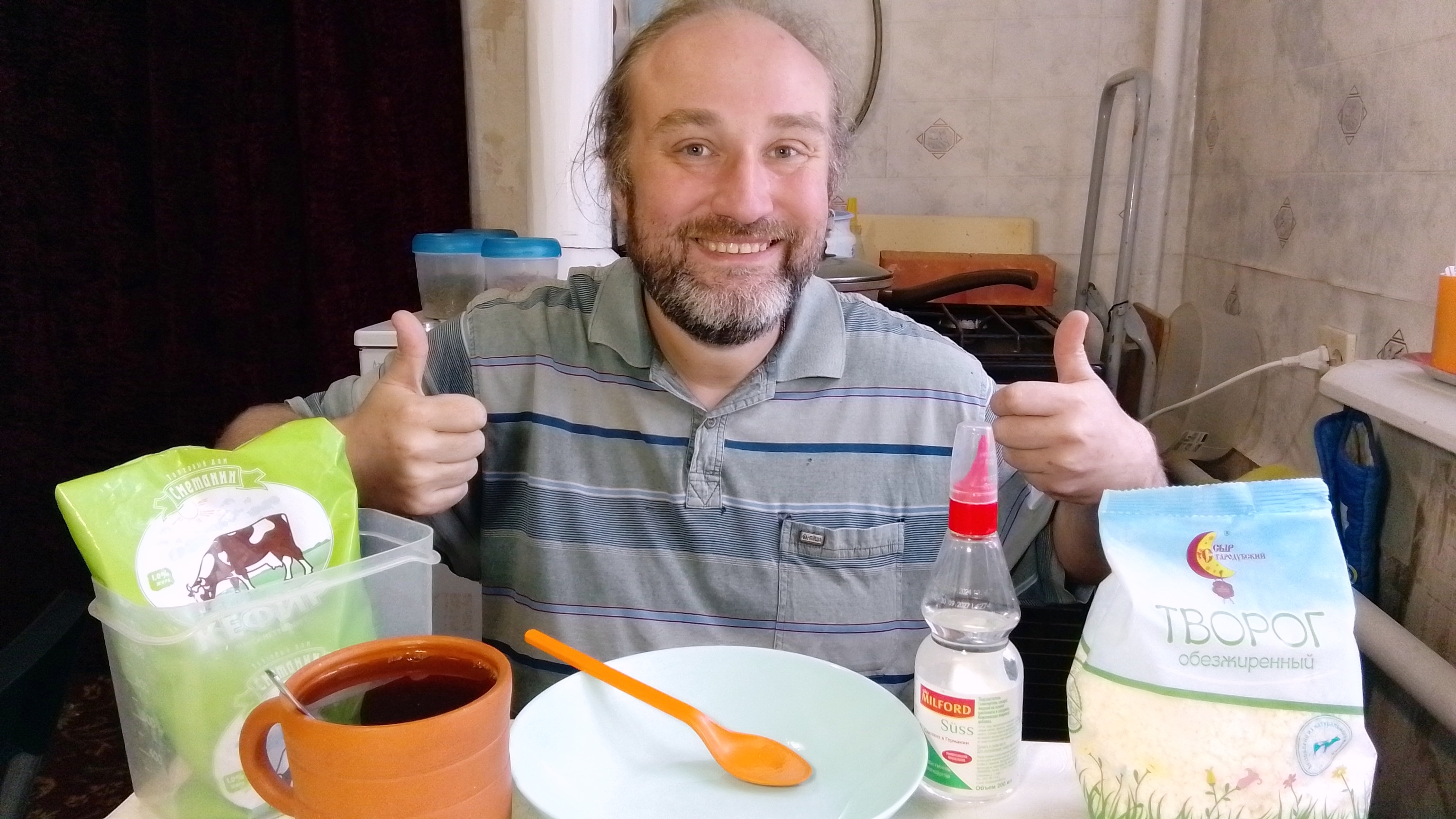 завтрак. пробую творог из Победы. Рыжуля не оценил. мукбанг. обжор. еда на камеру. диета. шизофрения
