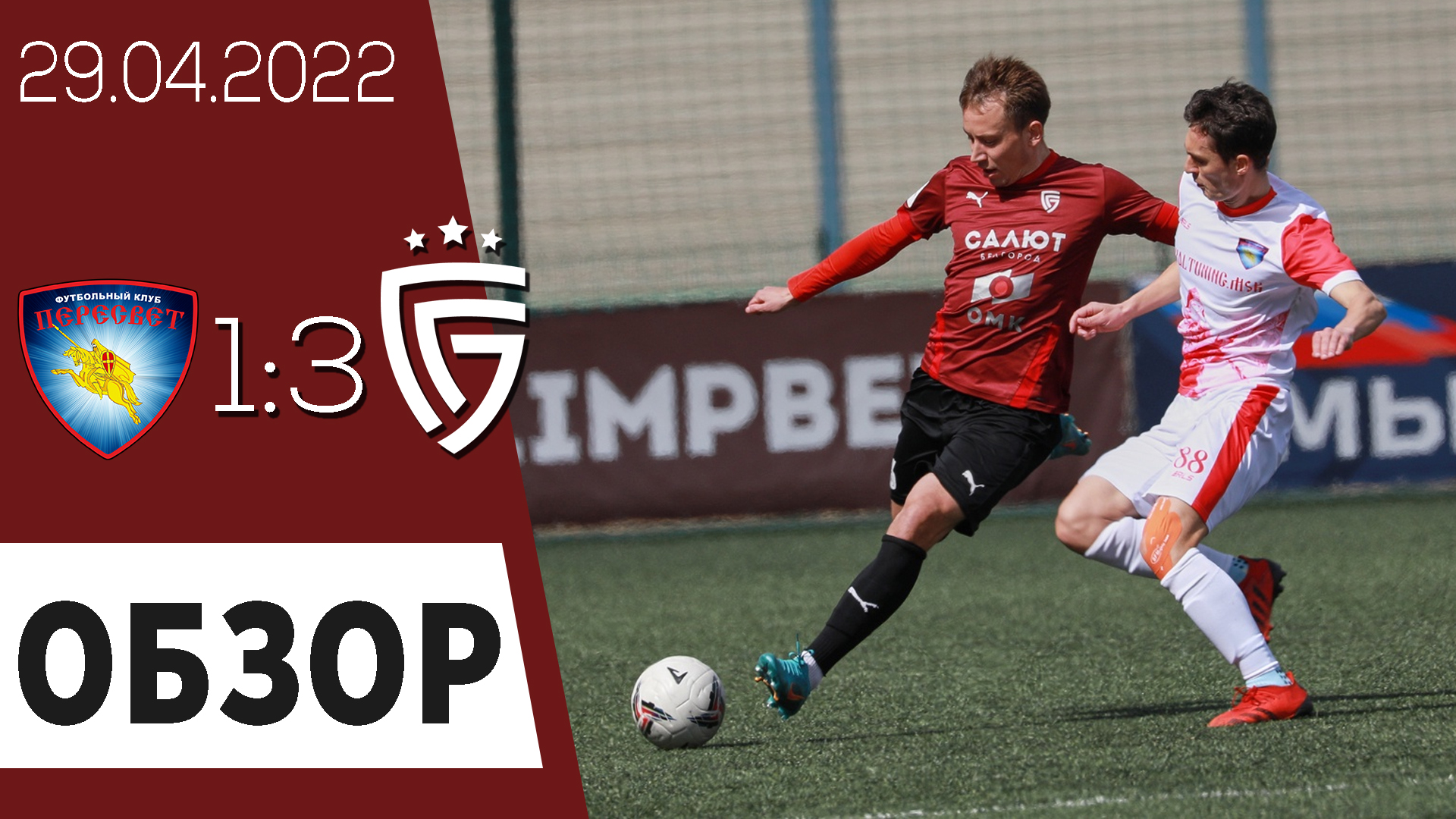 «Пересвет» - «Салют» 1:3 (0:1) Голы: Малахов, 12 (0:1); Малахов, 59 (0:2); Кудряшов, 65 (1:2); Канищев, 72 (1:3). Олимп-Первенство ФНЛ II дивизион, 5-й тур 29 апреля 2022 г. г. Домодедово, стадион «Авангард».