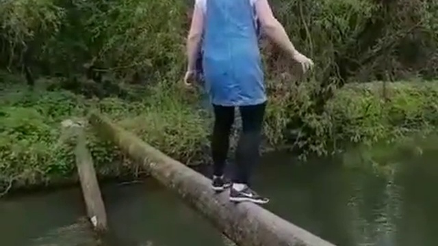 Девушка пыталась пройти через реку по бревну, но подскользнулась и упала. #девушки #река #падение #фейл #прикол