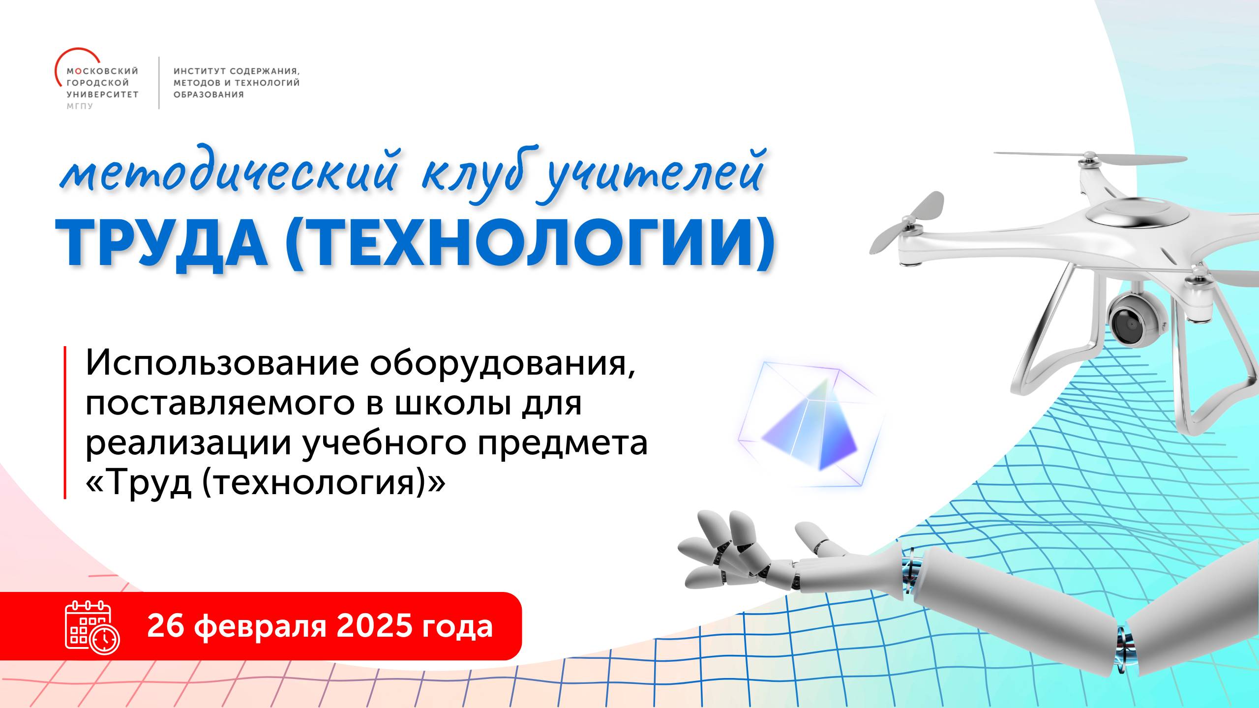 "Приглашаем учителей учебного предмета «Труд (технология)» 26 февраля в 16:00 на очередную встречу в Методическом клубе. На этот раз мы рассмотрим вопросы использования оборудования, поставляемого в школы для реализации учебного предмета «Труд (технология)». Спикеры: Ямка Петр Богданович Коробкова Оксана Николаевна Губанов Владислав Николаевич"