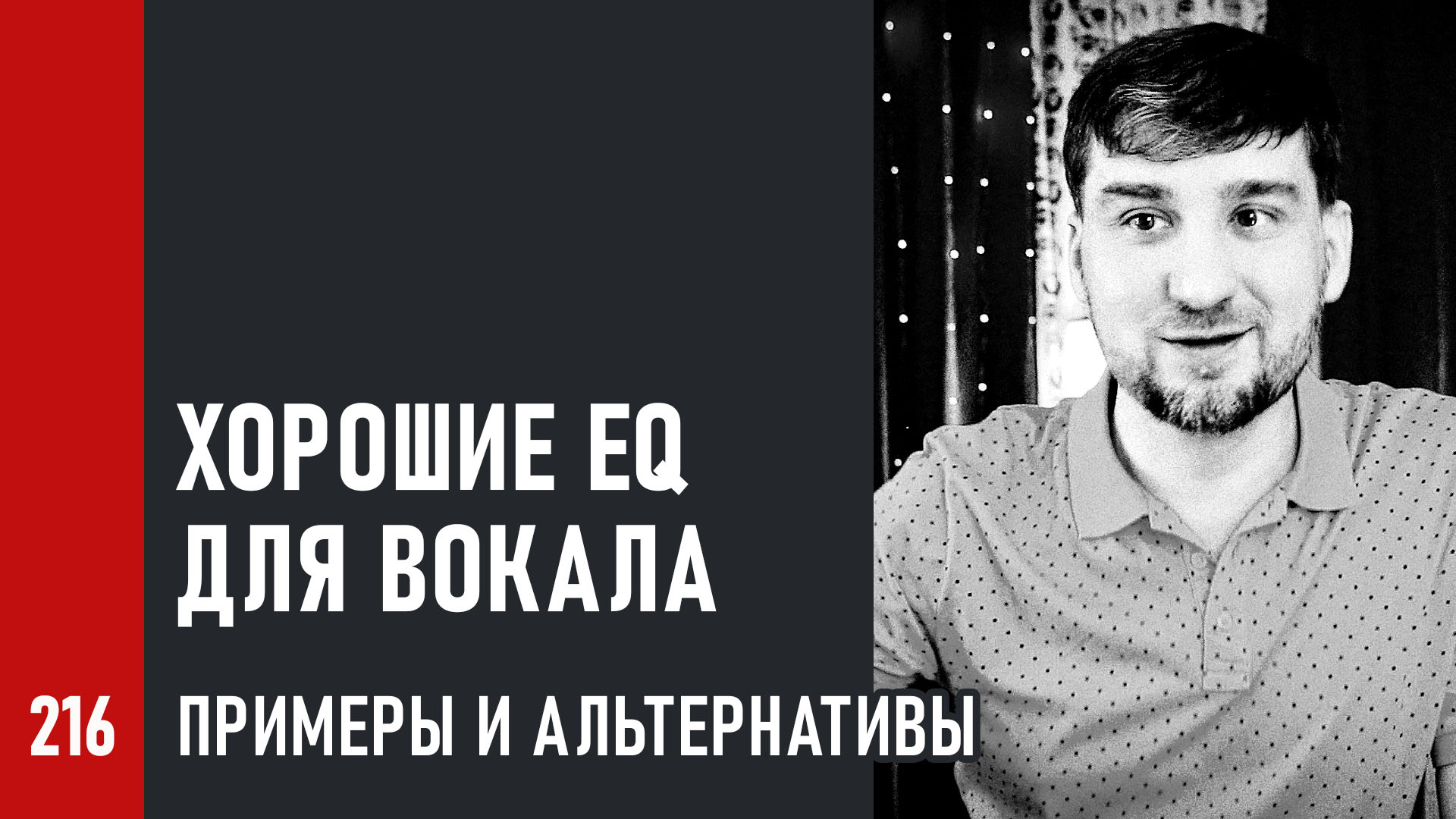 Как записать Хит 216 ? Хорошие эквалайзеры (EQ) для обработки вокала. Советы и примеры из студийной практики, проверенные временем. Применение Pulteq EQ, какие имеются альтернативы. 00:00 Хорошие эквалайзеры для обработки вокала 02:23 Применение Pulteq, альтернативы ???? Андрей Аспидов ? Музыкальный продюсер, эксперт, наставник. Автор системы марафонов по практической звукорежиссуре и музыкальному продюсированию. Telegram-канал ? https://t.me/artmusiccenter Обучение (марафоны) ? https://t.me/andrewaspidov_online VK сообщество ? https://vk.com/artmusiccenter Канал «Логово Звука» (статьи) ? https://t.me/logovozvuka YouTube ? https://www.youtube.com/artmusiccenter RuTube ? https://home.strannik-j.org/channel/25706915 TikTok ? https://tiktok.com/@andrew.aspidov Instagram ? https://instagram.com/artmusiccenter Философия Жизни ? http://aspidov.online ART MUSIC CENTER ? http://artmusic.center #КакЗаписатьХит #АндрейАспидов #ArtMusicCenter #запись #сведение #мастеринг #продюсер #звукорежиссура #продюсирование