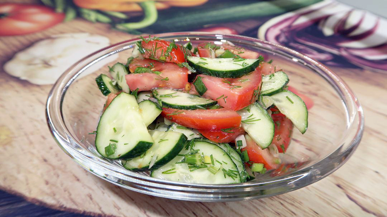 Овощной салат на скорую руку. Легкий салат из огурцов и помидоров