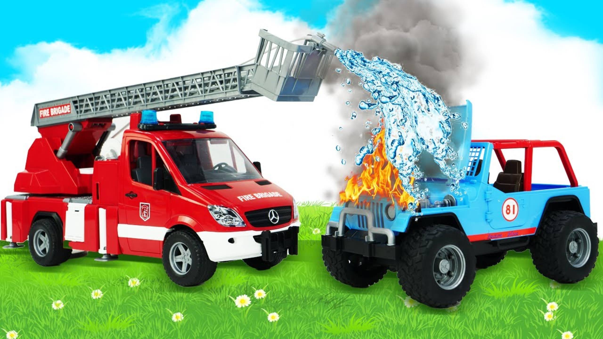 Машины Помощники - Как пожарная машина помогает в аварии? Видео для детей про машинки