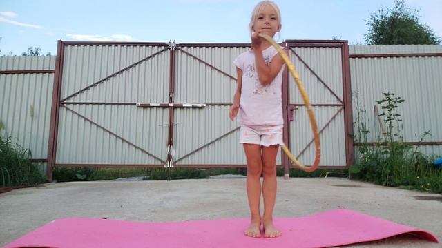 Даже летом тренеруюсь. Пытаюсь освоить элементы с обручем