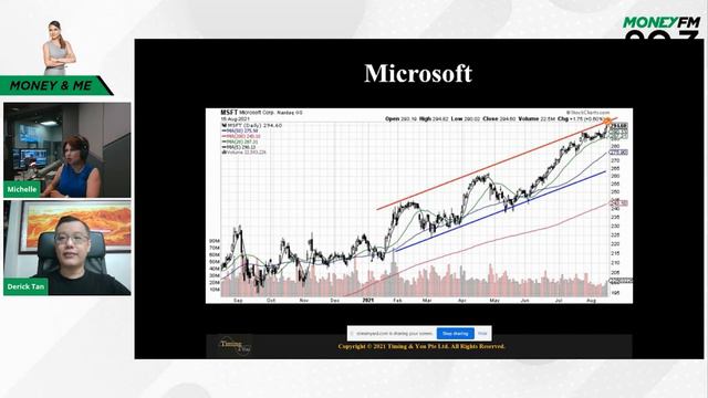 On #MoneyandMe, Michelle Martin and Derick Tan, Founder and Chief Executive Officer of Timing and You uses cyclical analysis to break down the charts of FTSE Bursa Malaysia, Microsoft's, Under Armour shares ahead of earnings, NVIDIA's upcoming earnings and Yangzijiang Shipbuilding. For more tune in to #YourMoney with Michelle Martin every weekday from 9AM - 12PM! -- Connect with Us! Facebook: MONEY FM 89.3 Instagram: @moneyfm893 Twitter: @moneyfm903 Linked In: MONEY FM 89.3 -- Contact us: MONEY FM 89.3 Headquarters: +65 6319 1900 Live Studio: +65 6691 1893 SMS/WhatsApp MONEY FM 89.3: +65 8855 0893 Mailing Address: SPH Radio Pte Ltd 1000 Toa Payoh North News Centre Singapore, Singapore: 318994 -- For any enquiries, visit www.moneyfm893.sg/contact-us/