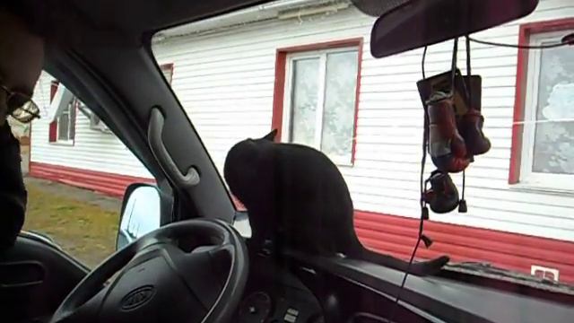 Едем в машине сутки и кот себя ведёт очень спокойно и уверено))
